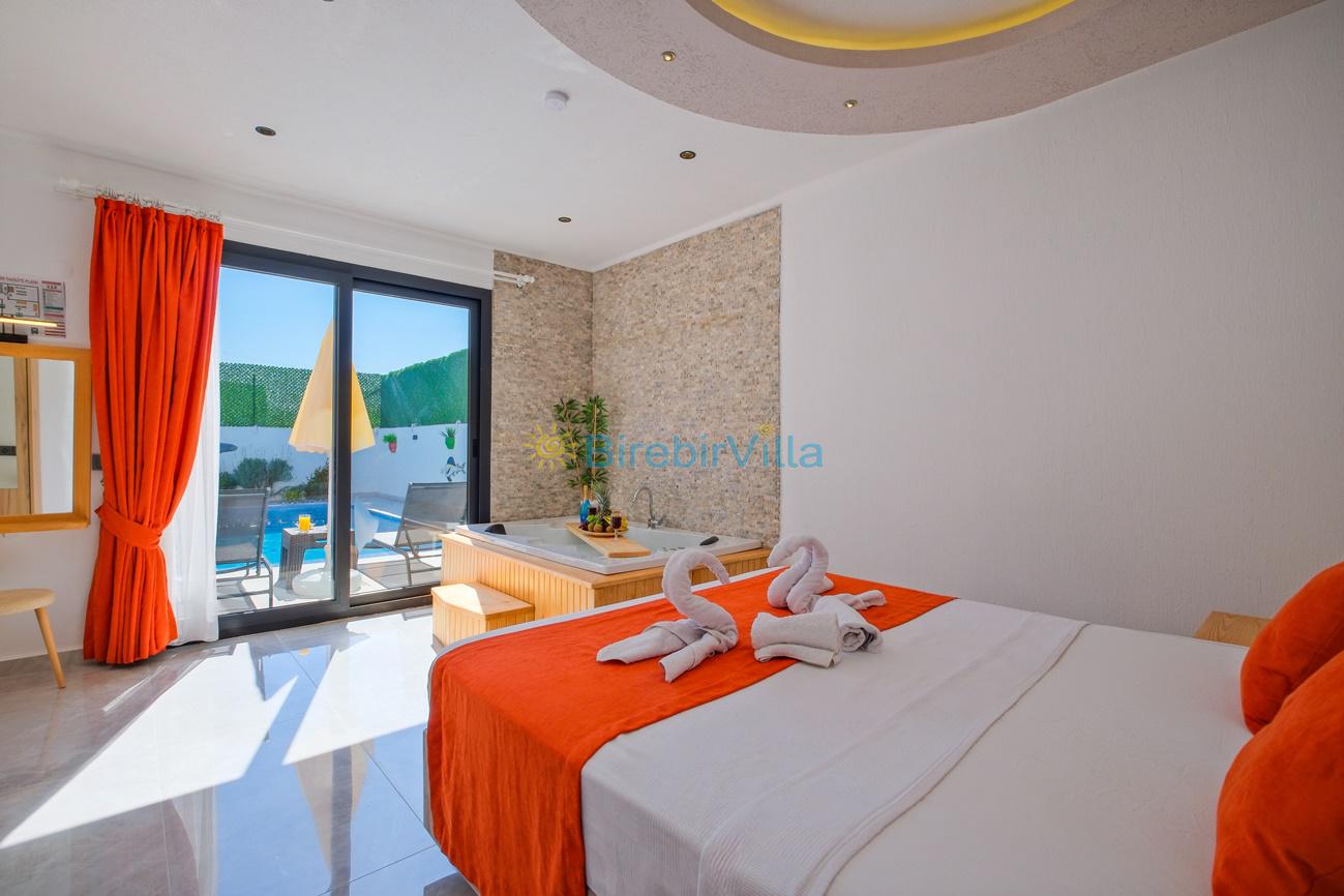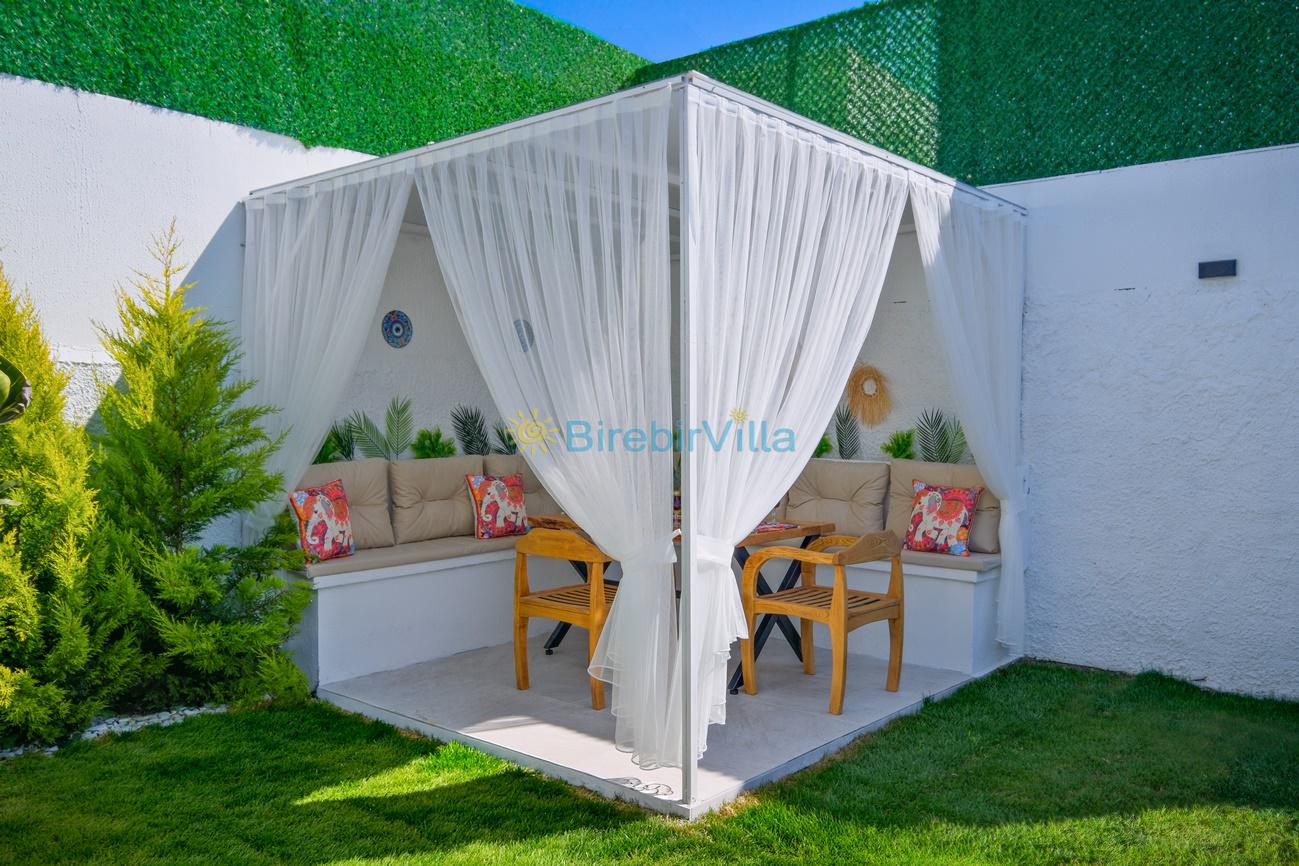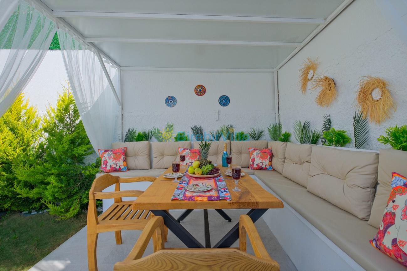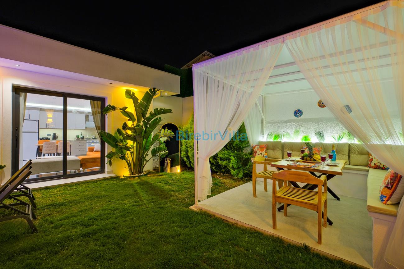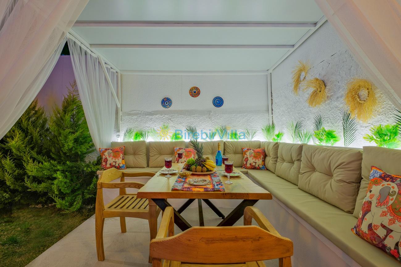 Not : Doğa ile iç içe konuma sahip olan tüm villalarımızda düzenli olarak ilaçlama yapılır. Buna rağmen çevrede haşere vb. bulunma ihtimali vardır. Havuzu korunaklı villalarımızda kesinlikle %100 görünmememe garantisi vermemekteyiz. Bu villalarımızda her zaman %10 sakınma payı mevcuttur. Sitemizde bulunan villa fotoğraflarının, görüntüyü ekrana sığdırmak için ’Geniş Açılı Lens’ ile çekilmektedir. Bu sebeple resimlerdeki objeler, gerçek boyutlarından daha büyük veya küçük görünebilmekte.