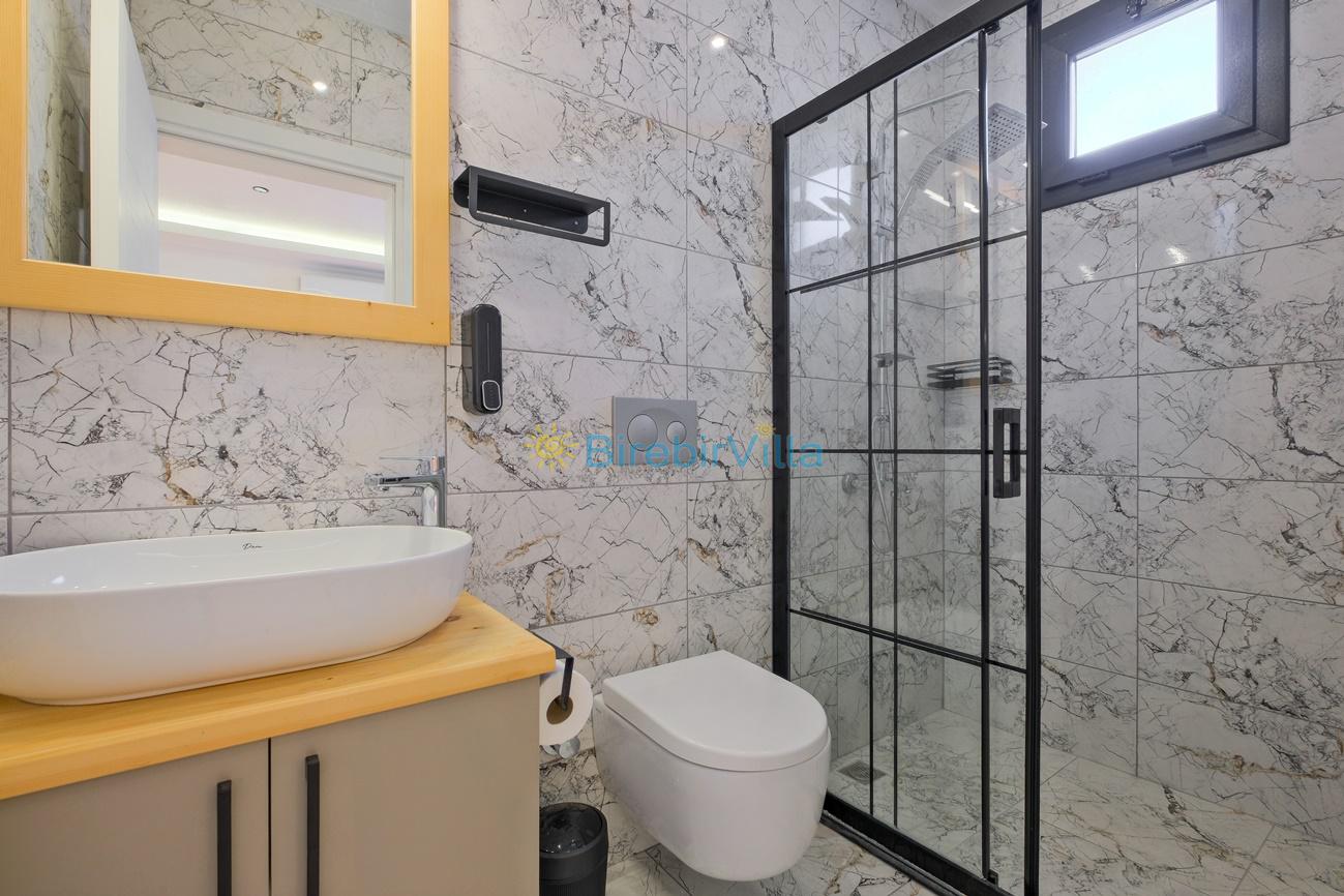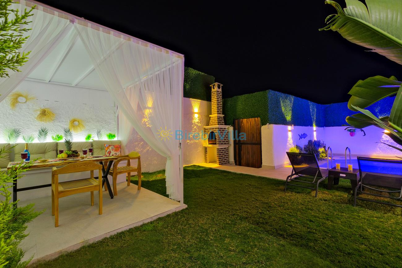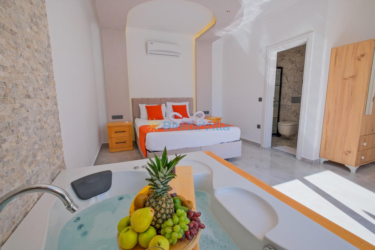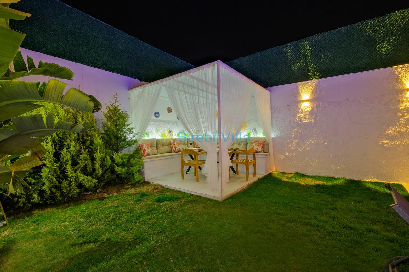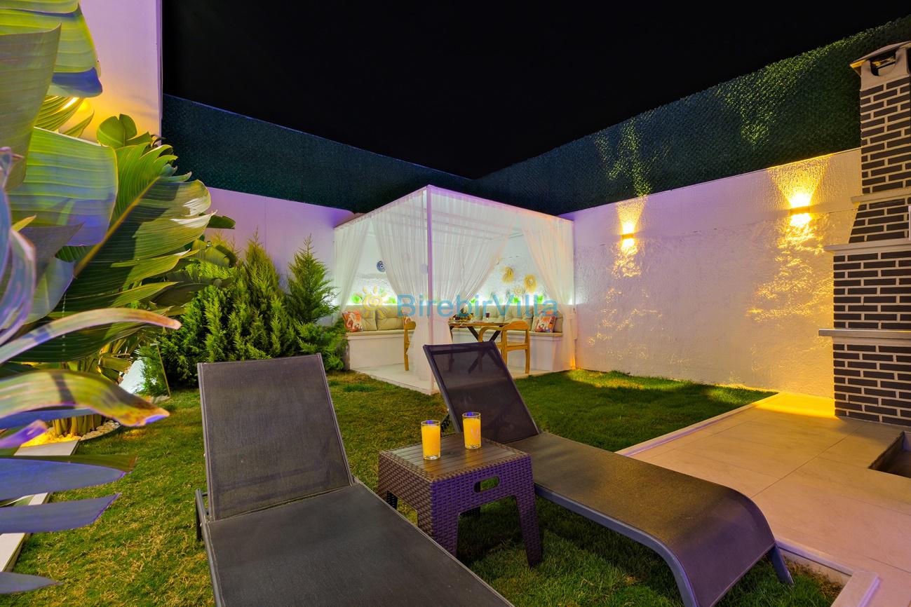 Not : Doğa ile iç içe konuma sahip olan tüm villalarımızda düzenli olarak ilaçlama yapılır. Buna rağmen çevrede haşere vb. bulunma ihtimali vardır. Havuzu korunaklı villalarımızda kesinlikle %100 görünmememe garantisi vermemekteyiz. Bu villalarımızda her zaman %10 sakınma payı mevcuttur. Sitemizde bulunan villa fotoğraflarının, görüntüyü ekrana sığdırmak için ’Geniş Açılı Lens’ ile çekilmektedir. Bu sebeple resimlerdeki objeler, gerçek boyutlarından daha büyük veya küçük görünebilmekte.