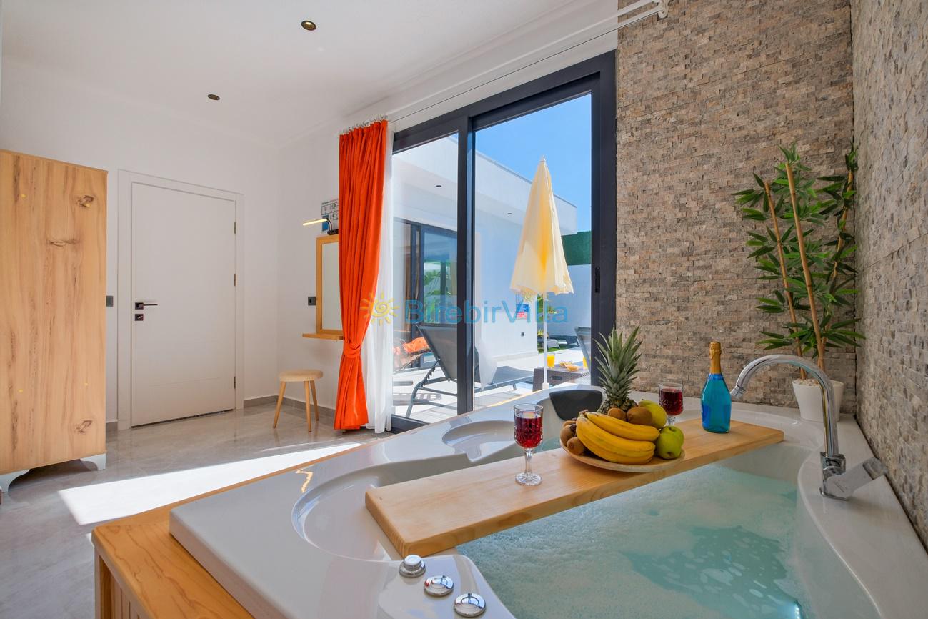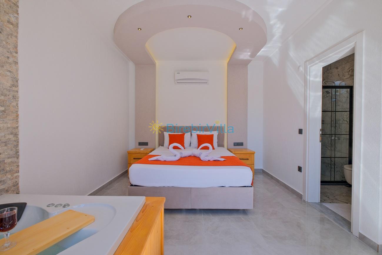1.Yatak odası: Çift kişilik yatak, klima, makyaj masası,jakuzi, ebeveyn banyo, elbise dolabı ve komodin bulunmaktadır.