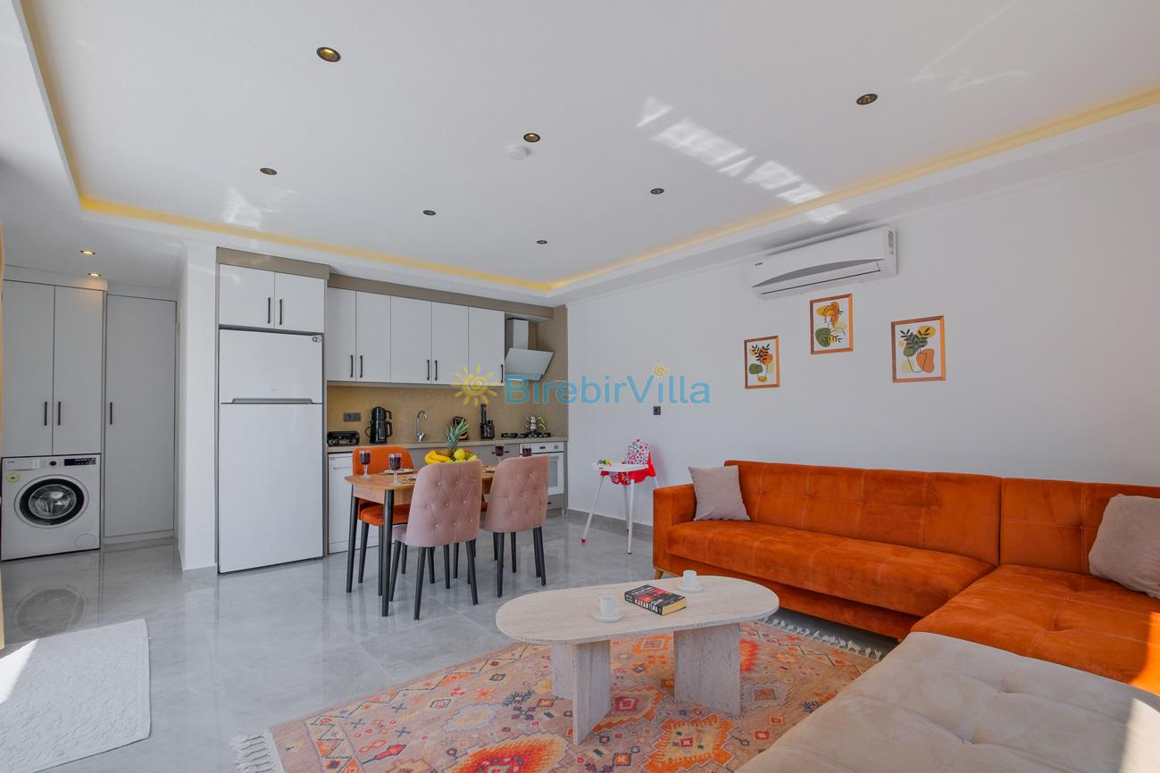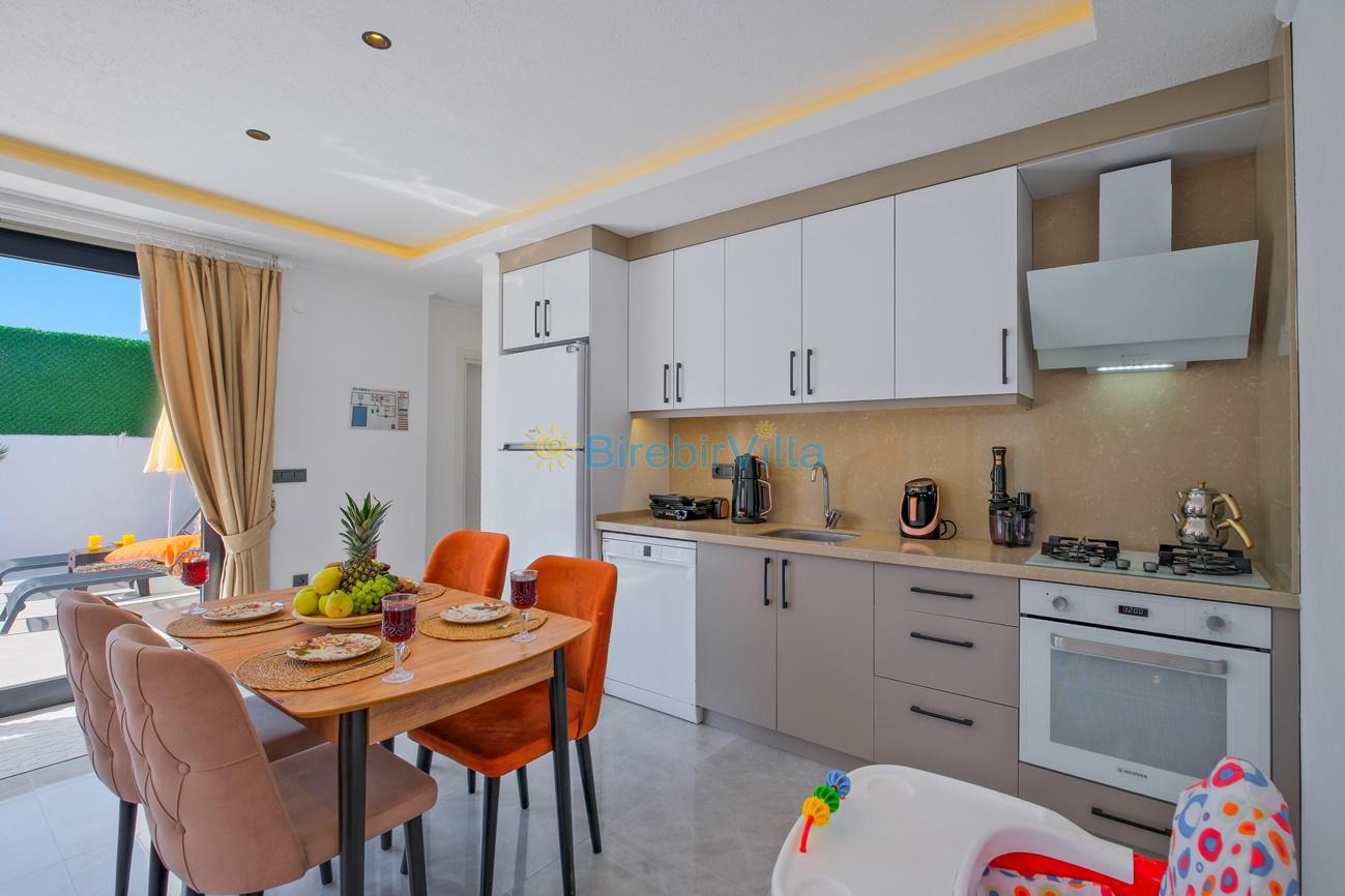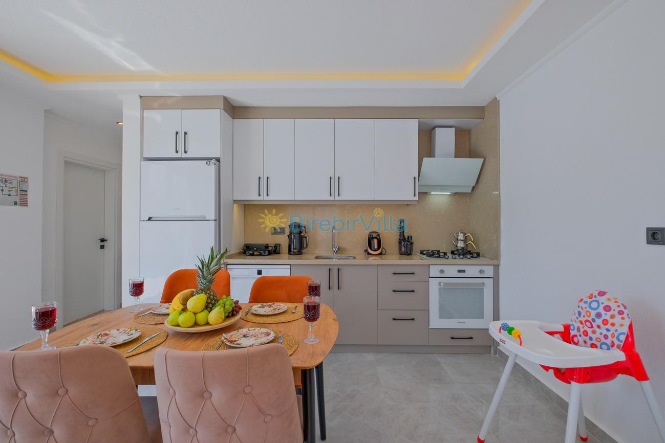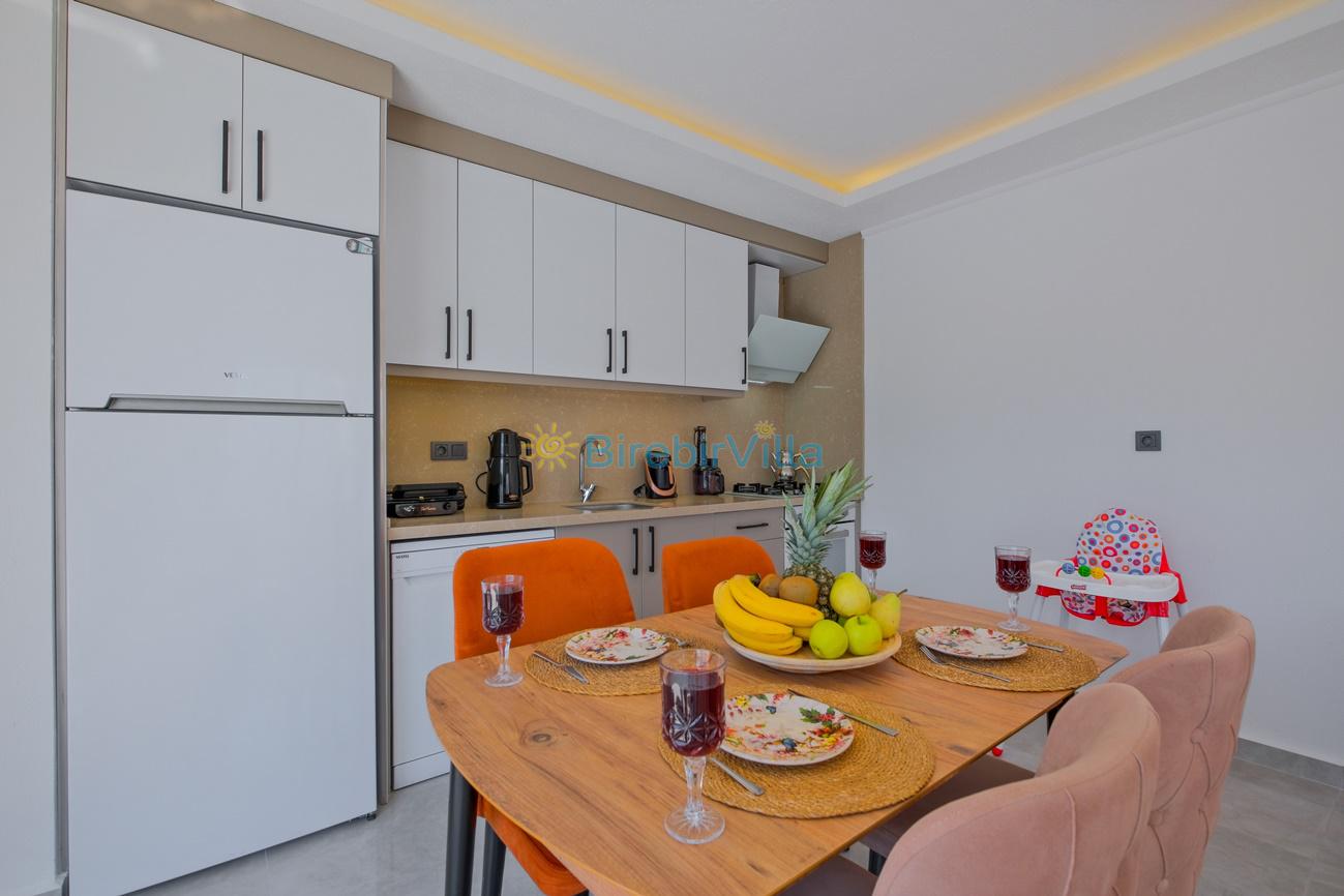 Mutfak: Açık mutfak, 4 kişi ve daha fazla kişiye yetecek kadar mutfak malzemeleri, bulaşık makinesi, çamaşır makinesi, fırın, ocak, buzdolabı, kahve makinesi,tost makinesi, çaydanlık ve kettle bulunmaktadır.