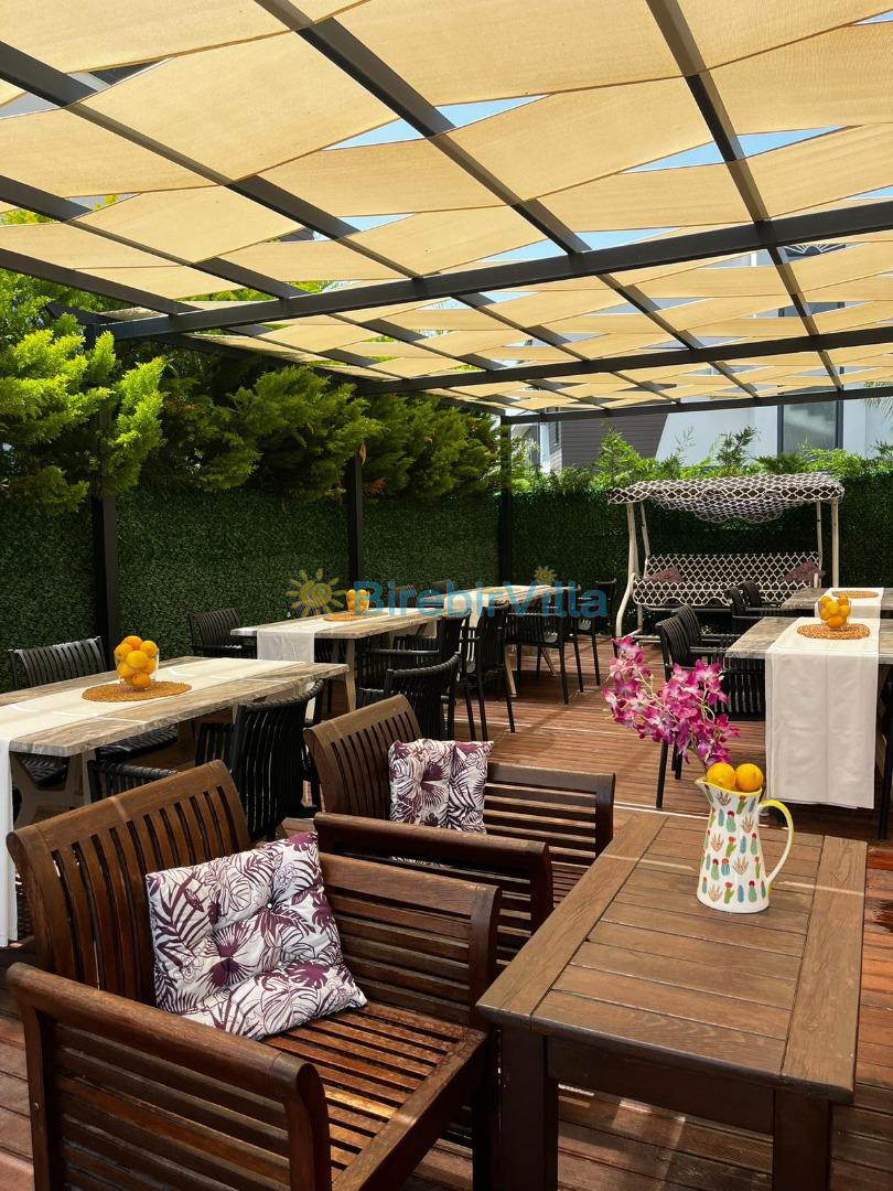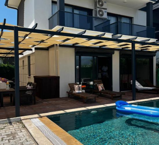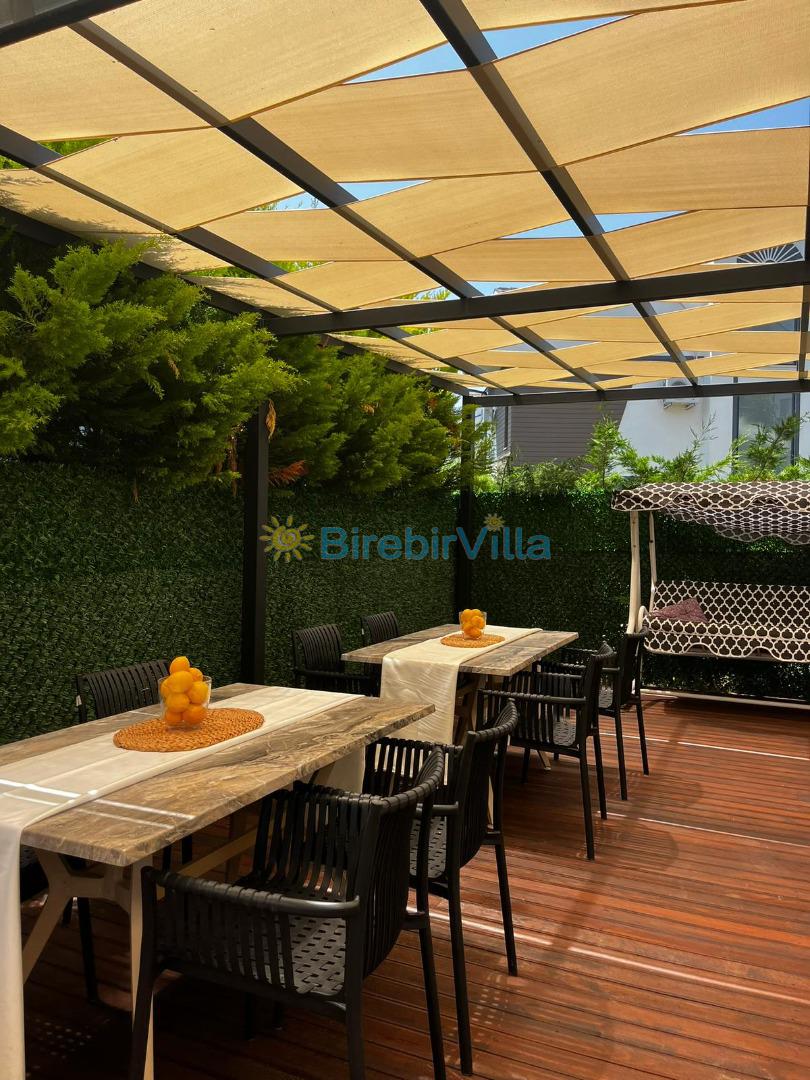 Not: Doğa ile iç içe konuma sahip olan tüm villalarımızda düzenli olarak ilaçlama yapılır. Buna rağmen çevrede haşere vb. bulunma ihtimali vardır. Havuzu korunaklı villalarımızda kesinlikle %100 görünmeme garantisi vermemekteyiz. Bu villalarımızda her zaman %10 sakınma payı mevcuttur. Sitemizde bulunan villa fotoğraflarının, görüntüyü ekrana sığdırmak için ’Geniş Açılı Lens’ ile çekilmektedir. Bu sebeple resimlerdeki objeler, gerçek boyutlarından daha büyük veya küçük görünebilmekte.