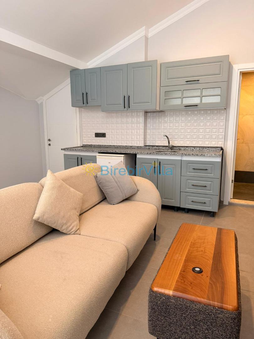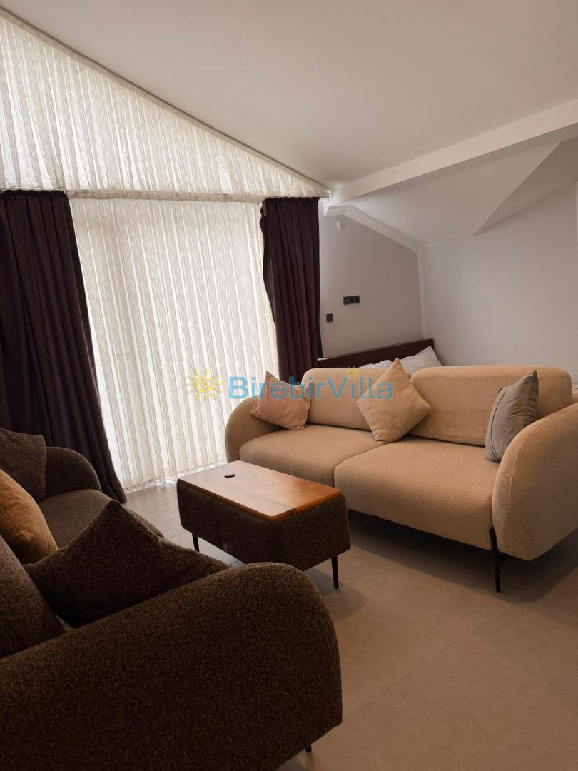 Salon: Özenle döşenmiş açık mutfaklı salon, modern koltuklar, 6 kişilik yemek masası, Led tv, uydu alıcısı ve klima bulunmaktadır.