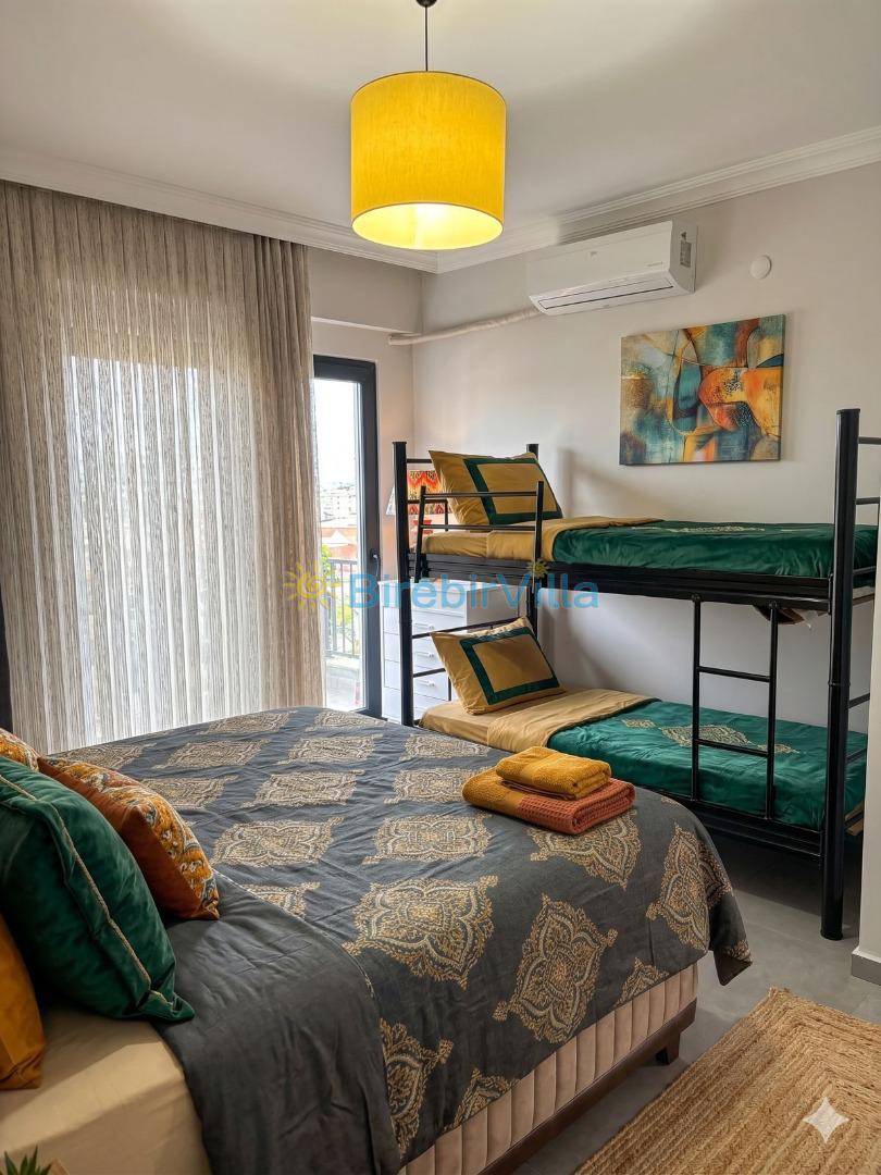 4.Yatak odası: 1 tane çift kişilik ranza yatak, 1 tane çift kişilik yatak, klima, ebeveyn banyo ve elbise dolabı bulunmaktadır.
