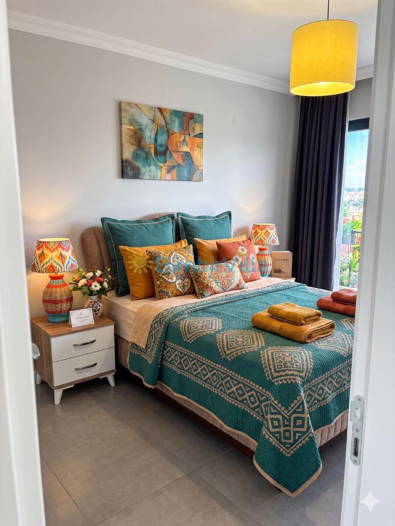 3.Yatak odası: Çift kişilik yatak, klima, ebeveyn banyo ve elbise dolabı bulunmaktadır.
