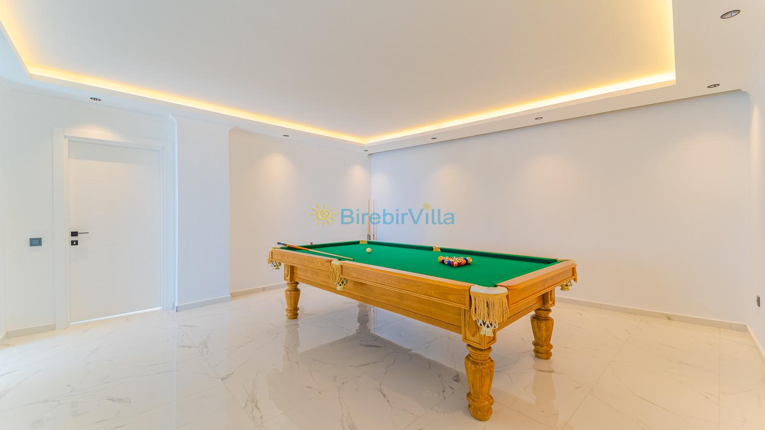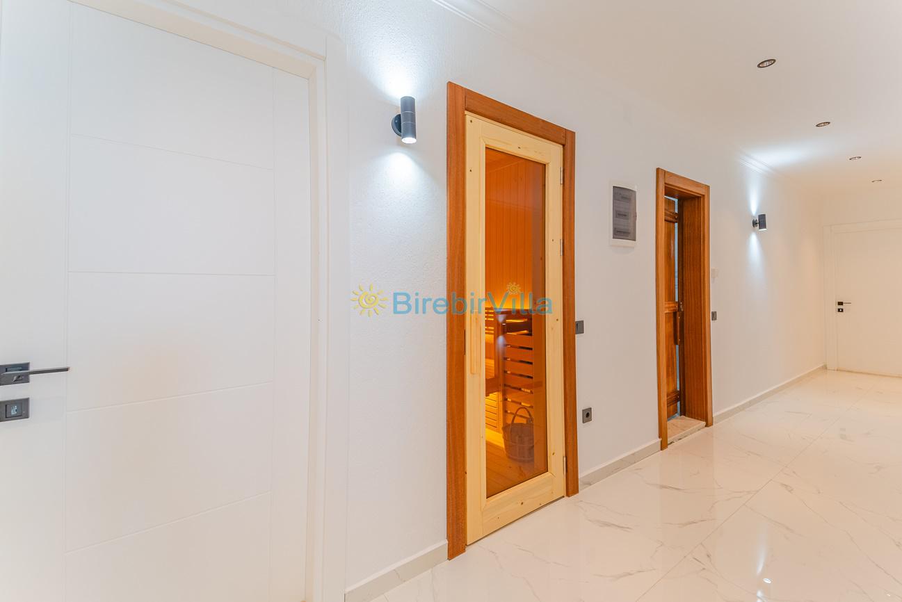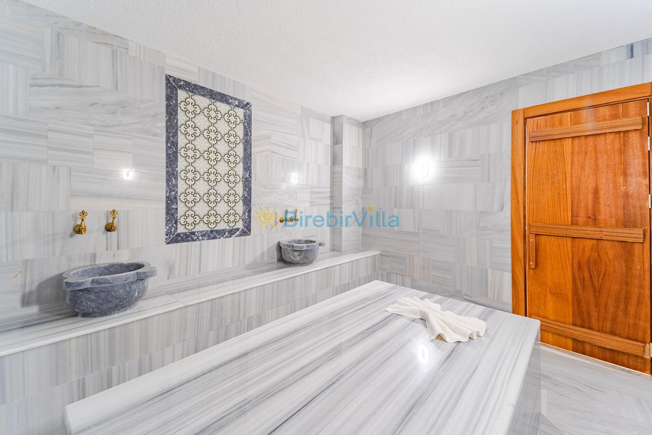 Salon: Özenle döşenmiş açık planlı mutfak, modern oturma grubu, Lcd tv, uydu alıcısı ve klima bulunmaktadır. Havuz-bahçe alanına çıkış kapısı bulunmaktadır.