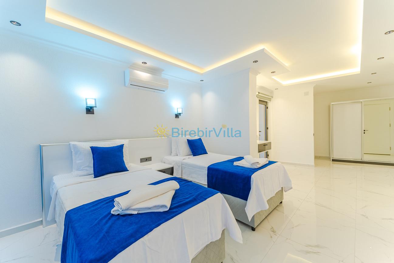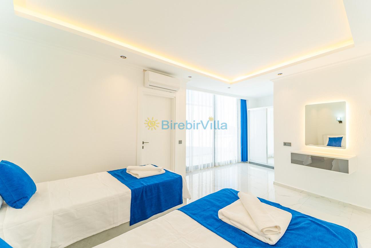 1. Yatak Odası : İki Tek kişllik yatak, elbise dolabı, komodin, klima ve ebeveyn banyo bulunmaktadır.
