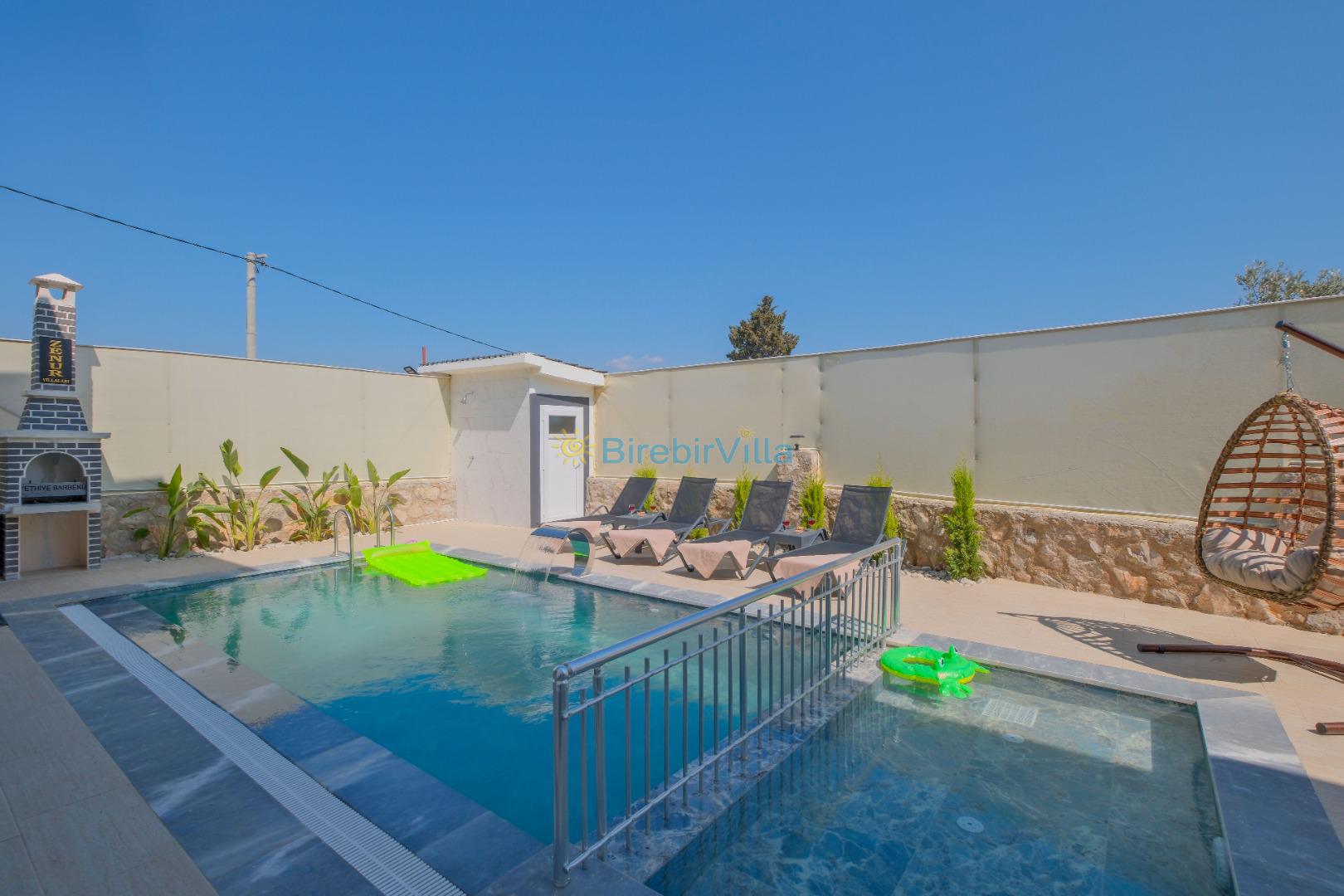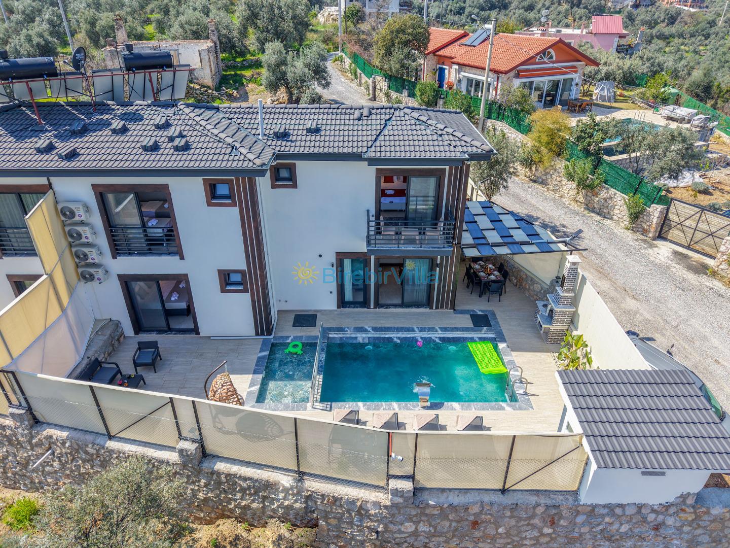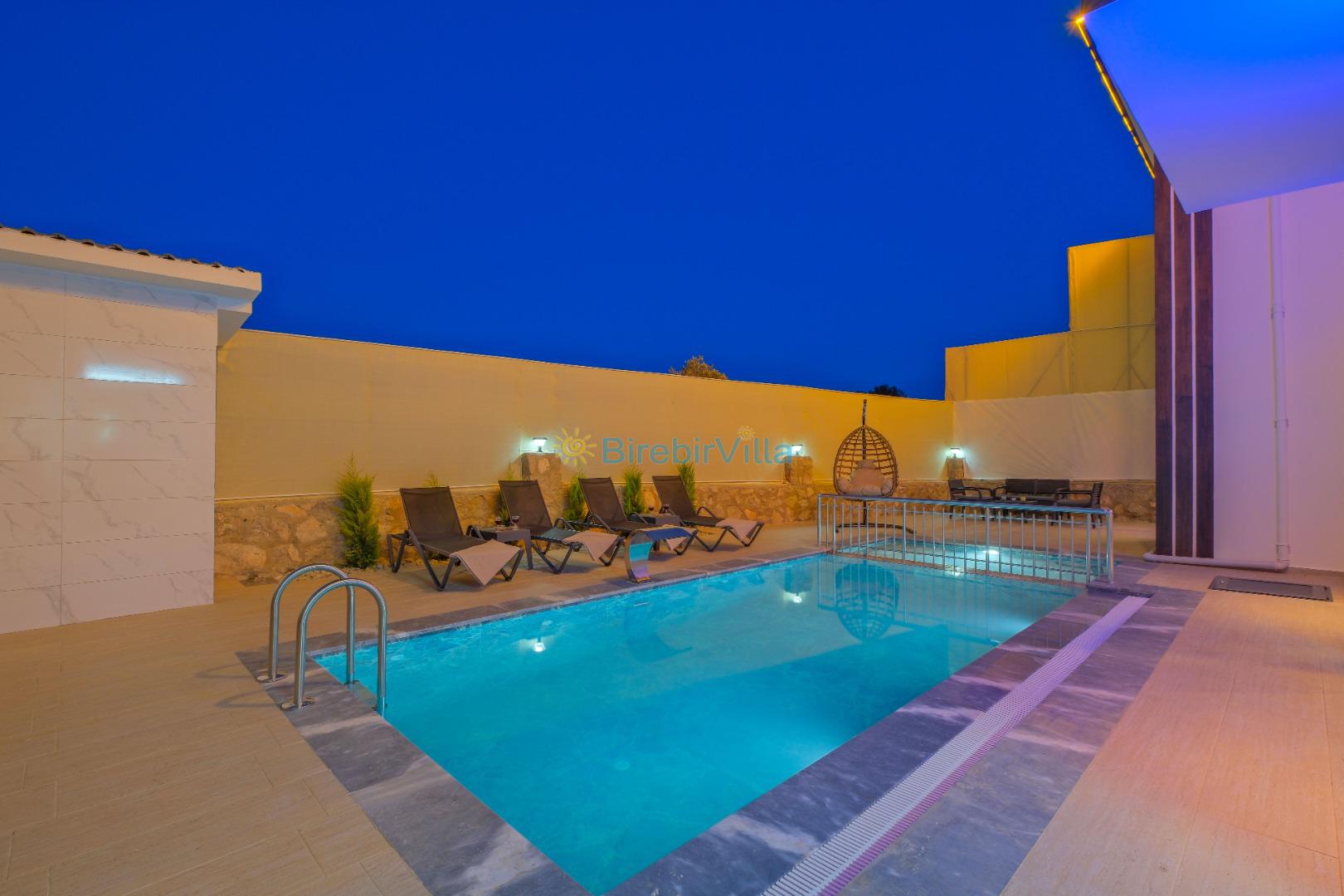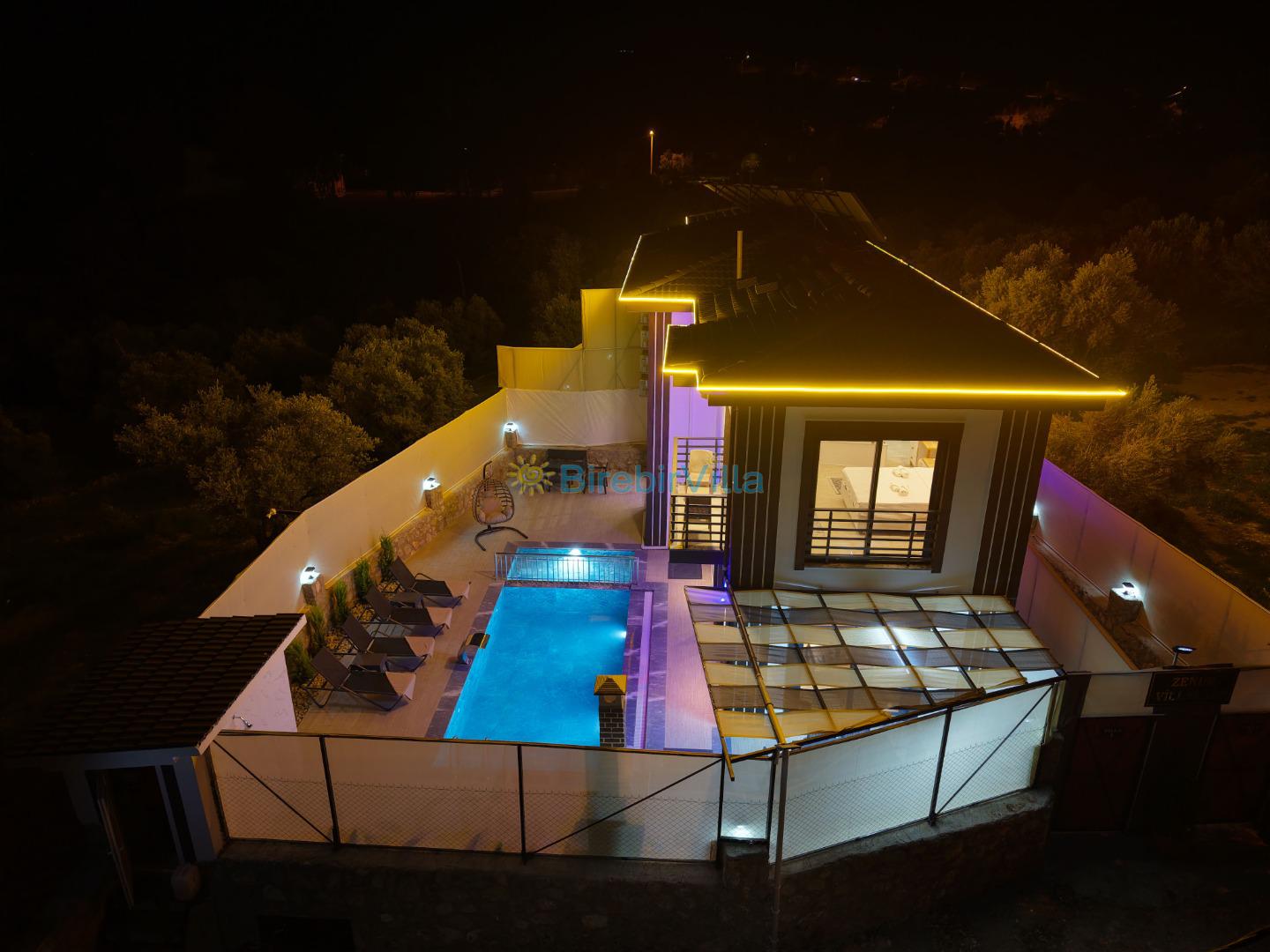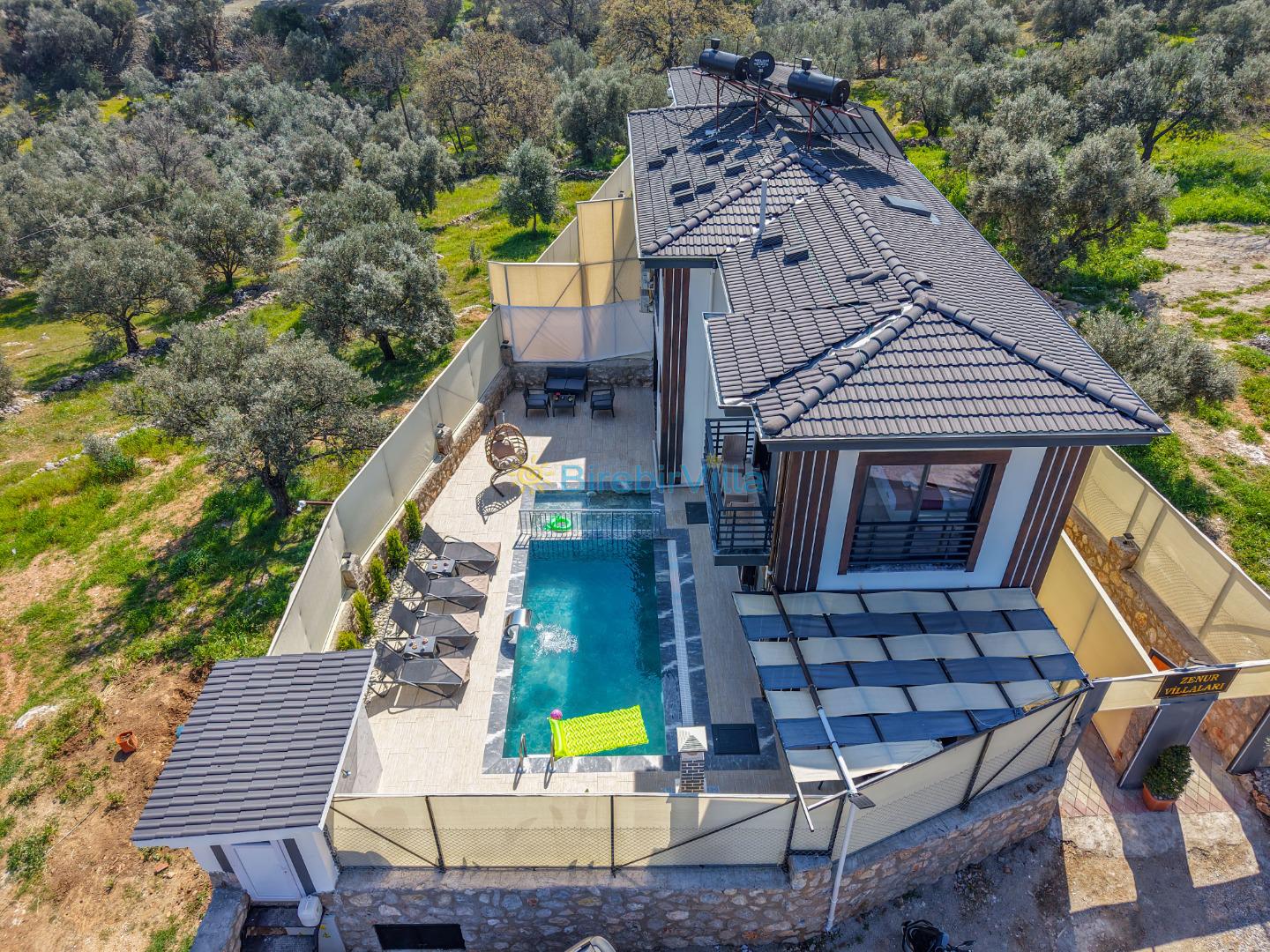 Not: Doğa ile iç içe konuma sahip olan tüm villalarımızda düzenli olarak ilaçlama yapılır. Buna rağmen çevrede haşere vb. bulunma ihtimali vardır. Havuzu korunaklı villalarımızda kesinlikle %100 görünmeme garantisi vermemekteyiz. Bu villalarımızda her zaman % 5 sakınma payı mevcuttur. Sitemizde bulunan villa fotoğraflarının, görüntüyü ekrana sığdırmak için ’Geniş Açılı Lens’ ile çekilmektedir. Bu sebeple resimlerdeki objeler, gerçek boyutlarından daha büyük veya küçük görünebilmekte.