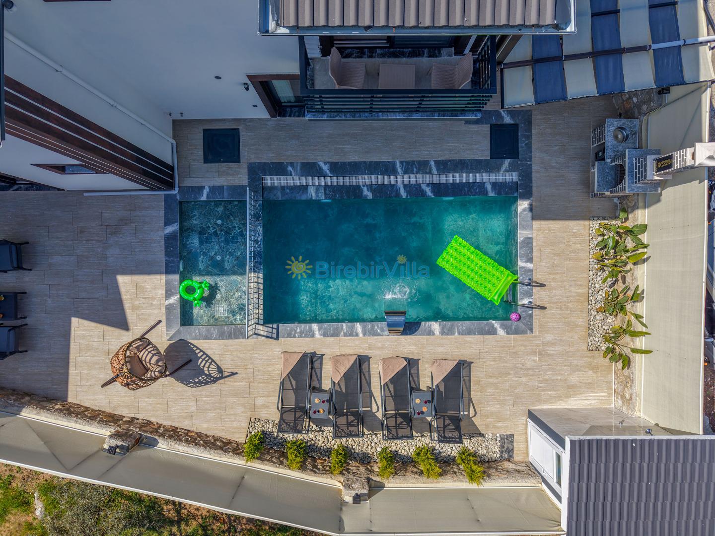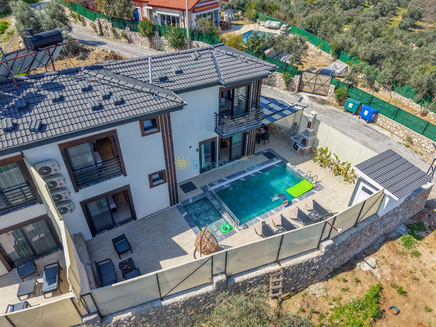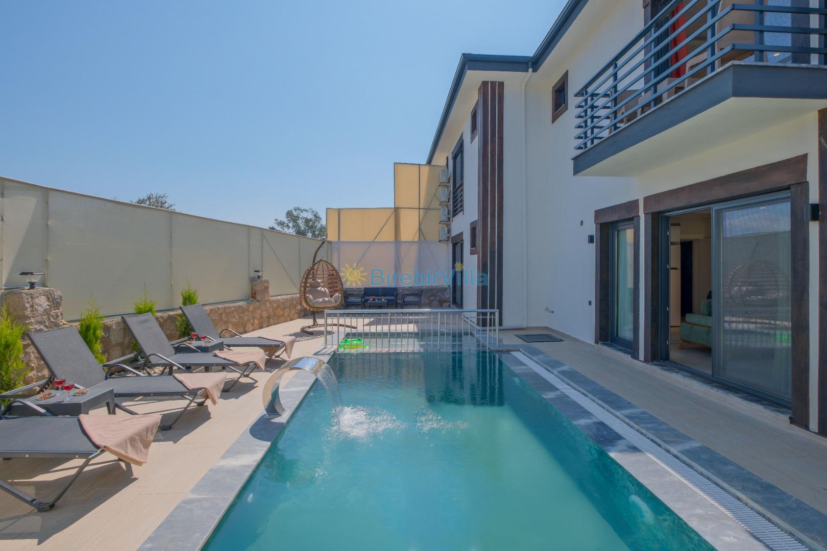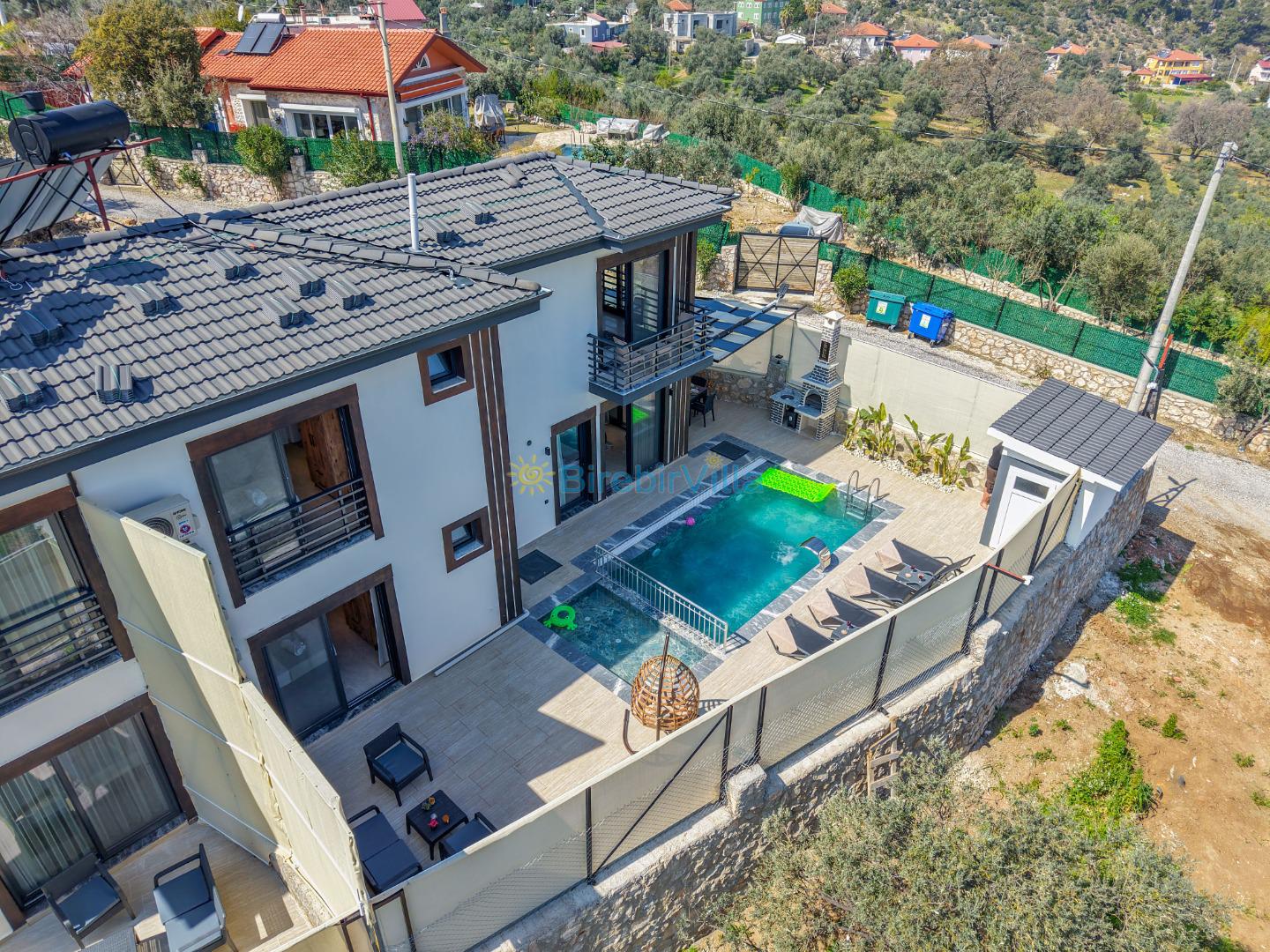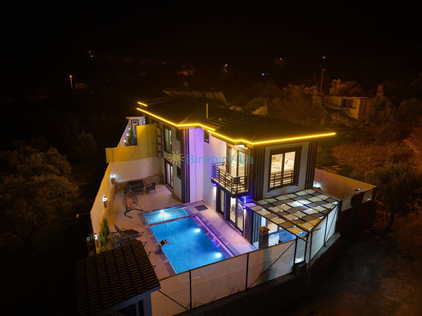 Not: Doğa ile iç içe konuma sahip olan tüm villalarımızda düzenli olarak ilaçlama yapılır. Buna rağmen çevrede haşere vb. bulunma ihtimali vardır. Havuzu korunaklı villalarımızda kesinlikle %100 görünmeme garantisi vermemekteyiz. Bu villalarımızda her zaman % 5 sakınma payı mevcuttur. Sitemizde bulunan villa fotoğraflarının, görüntüyü ekrana sığdırmak için ’Geniş Açılı Lens’ ile çekilmektedir. Bu sebeple resimlerdeki objeler, gerçek boyutlarından daha büyük veya küçük görünebilmekte.