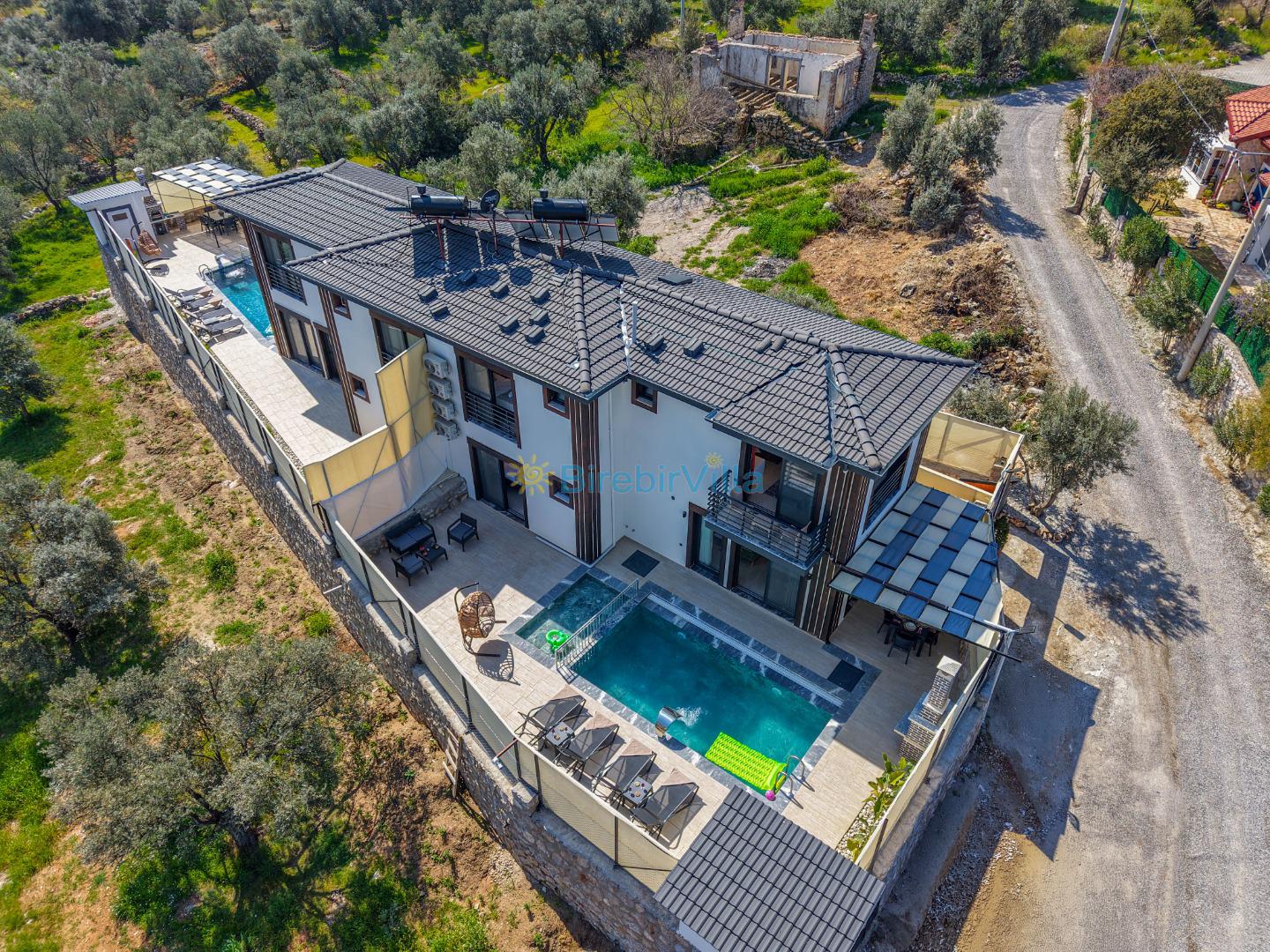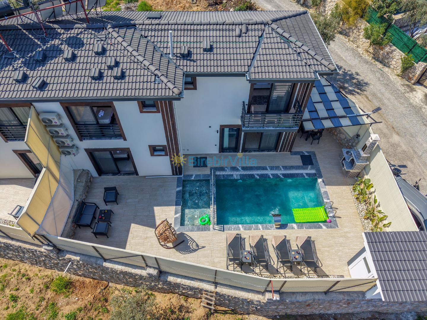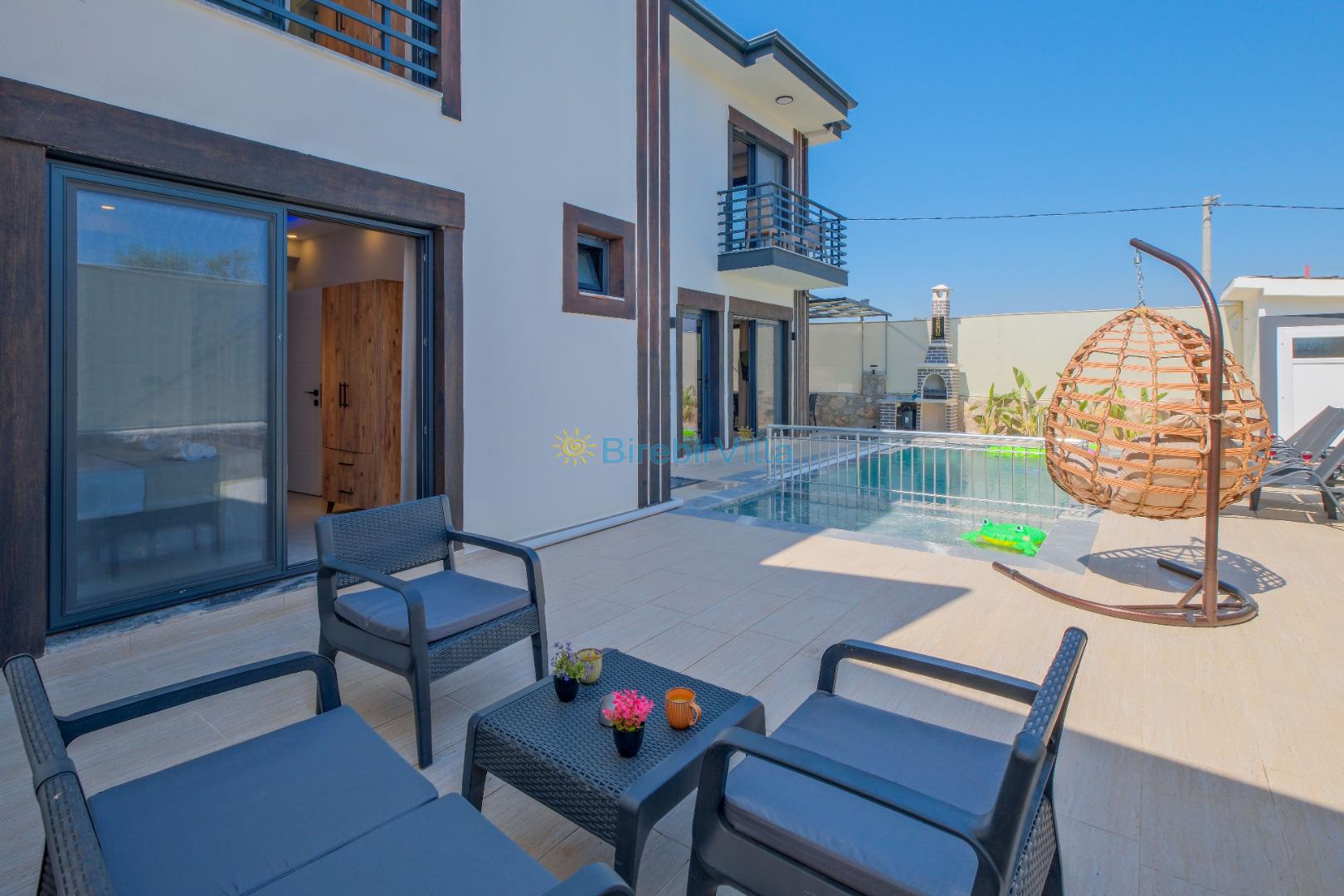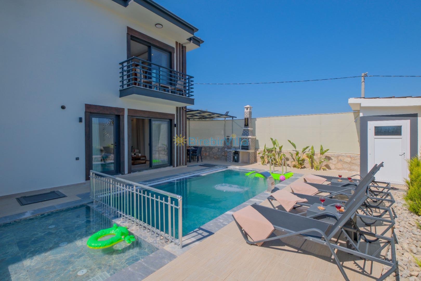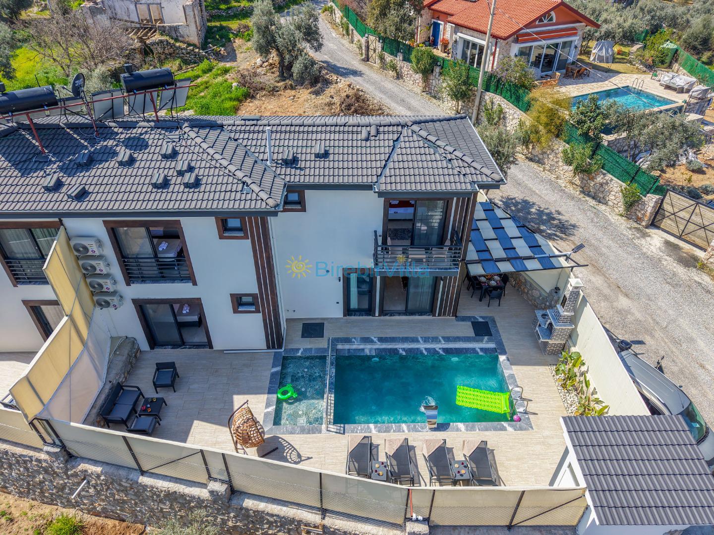 Not: Doğa ile iç içe konuma sahip olan tüm villalarımızda düzenli olarak ilaçlama yapılır. Buna rağmen çevrede haşere vb. bulunma ihtimali vardır. Havuzu korunaklı villalarımızda kesinlikle %100 görünmeme garantisi vermemekteyiz. Bu villalarımızda her zaman % 5 sakınma payı mevcuttur. Sitemizde bulunan villa fotoğraflarının, görüntüyü ekrana sığdırmak için ’Geniş Açılı Lens’ ile çekilmektedir. Bu sebeple resimlerdeki objeler, gerçek boyutlarından daha büyük veya küçük görünebilmekte.