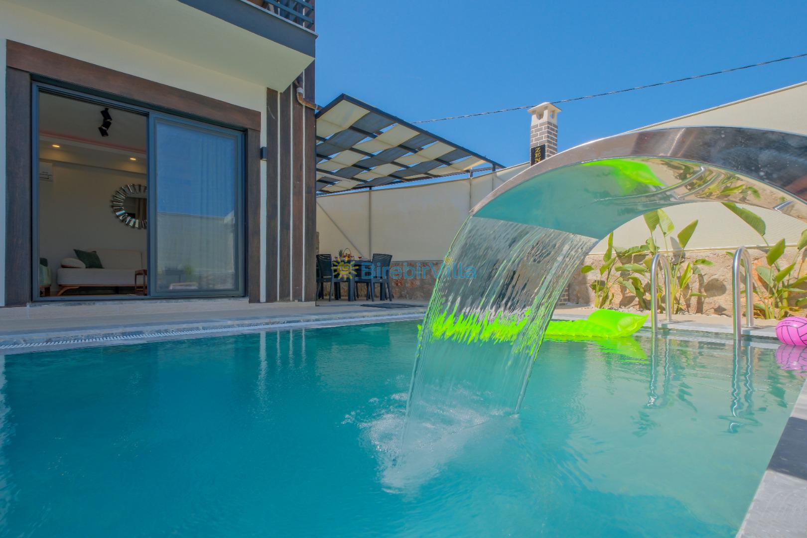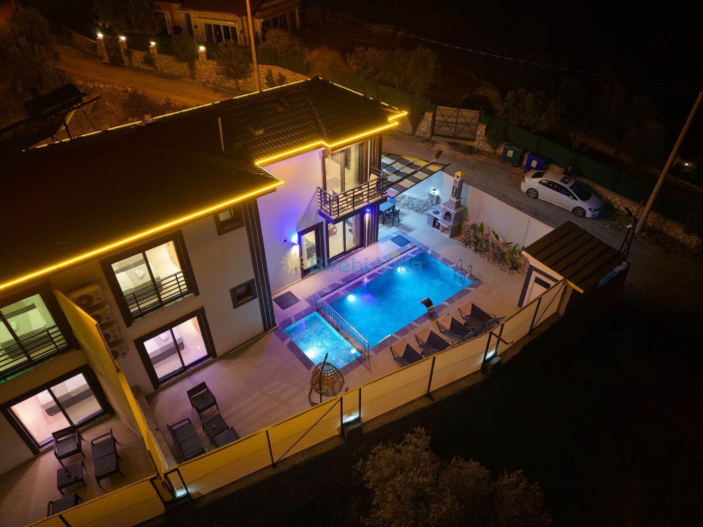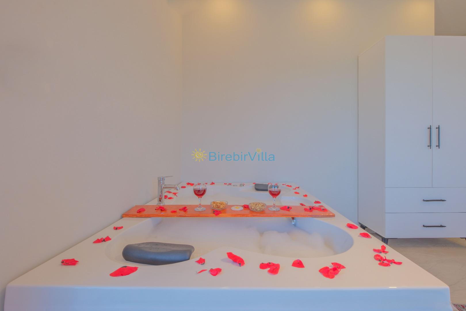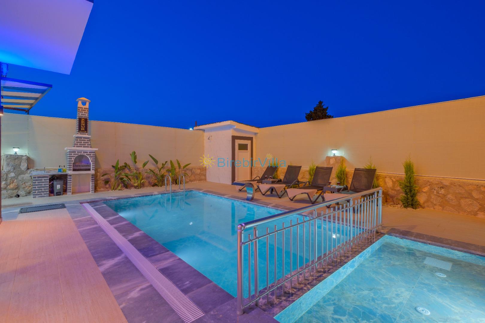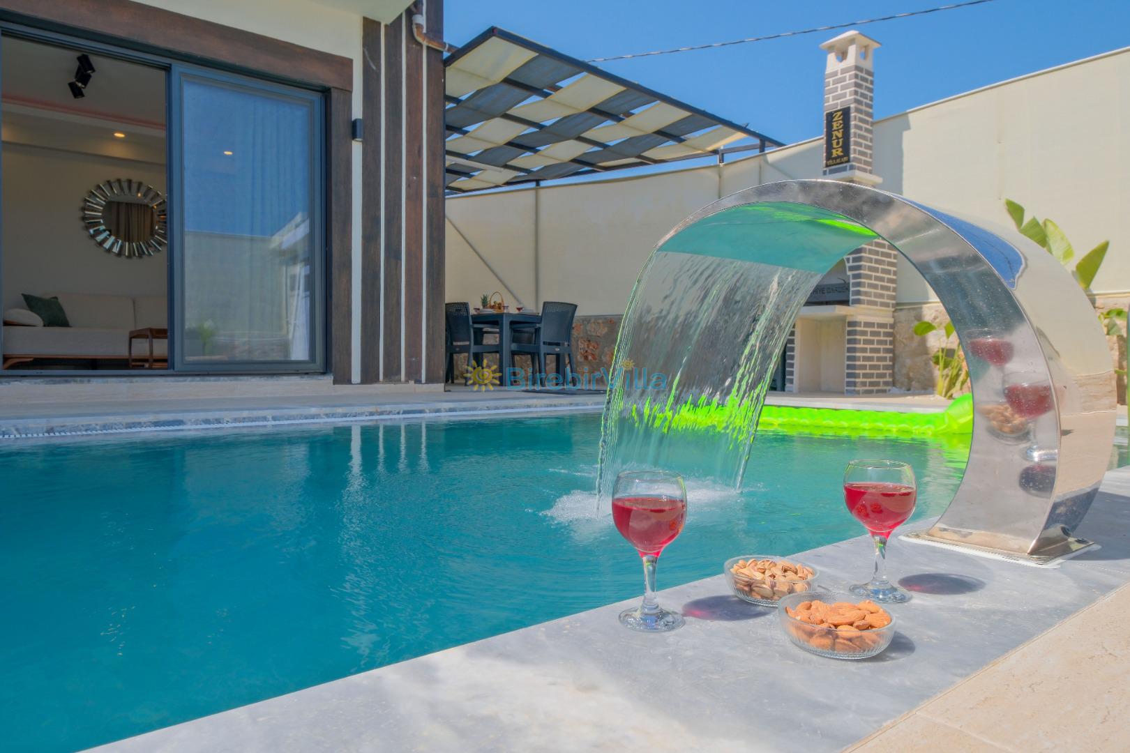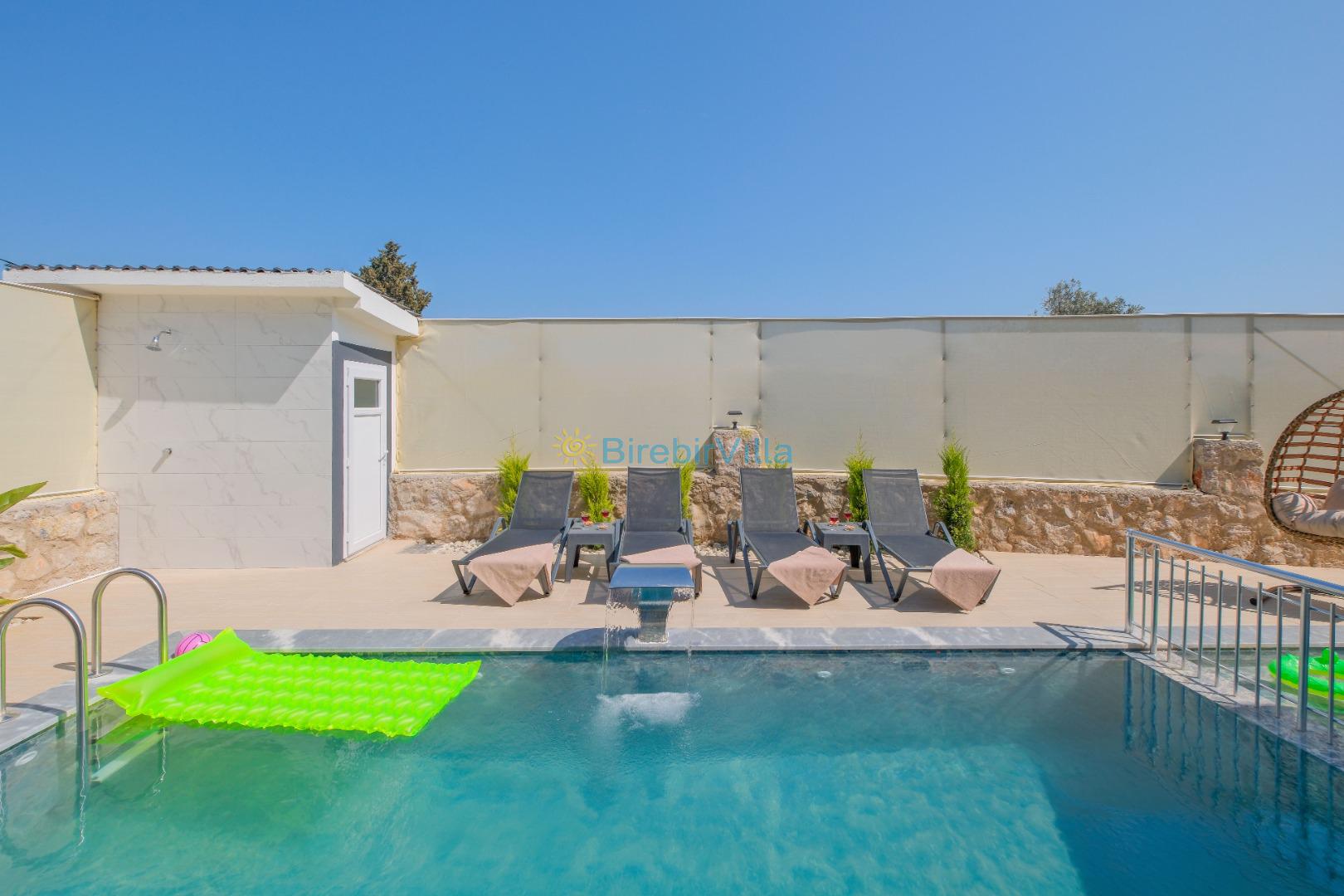 Not: Doğa ile iç içe konuma sahip olan tüm villalarımızda düzenli olarak ilaçlama yapılır. Buna rağmen çevrede haşere vb. bulunma ihtimali vardır. Havuzu korunaklı villalarımızda kesinlikle %100 görünmeme garantisi vermemekteyiz. Bu villalarımızda her zaman % 5 sakınma payı mevcuttur. Sitemizde bulunan villa fotoğraflarının, görüntüyü ekrana sığdırmak için ’Geniş Açılı Lens’ ile çekilmektedir. Bu sebeple resimlerdeki objeler, gerçek boyutlarından daha büyük veya küçük görünebilmekte.