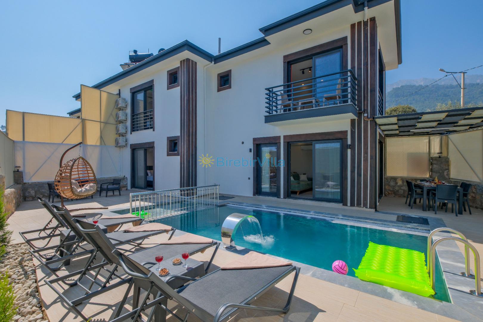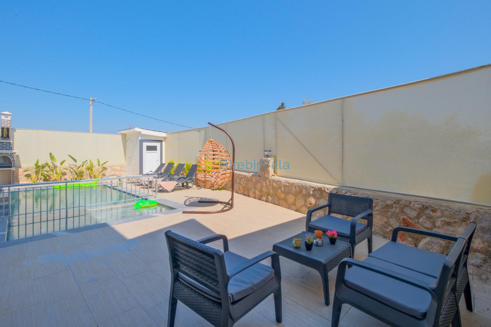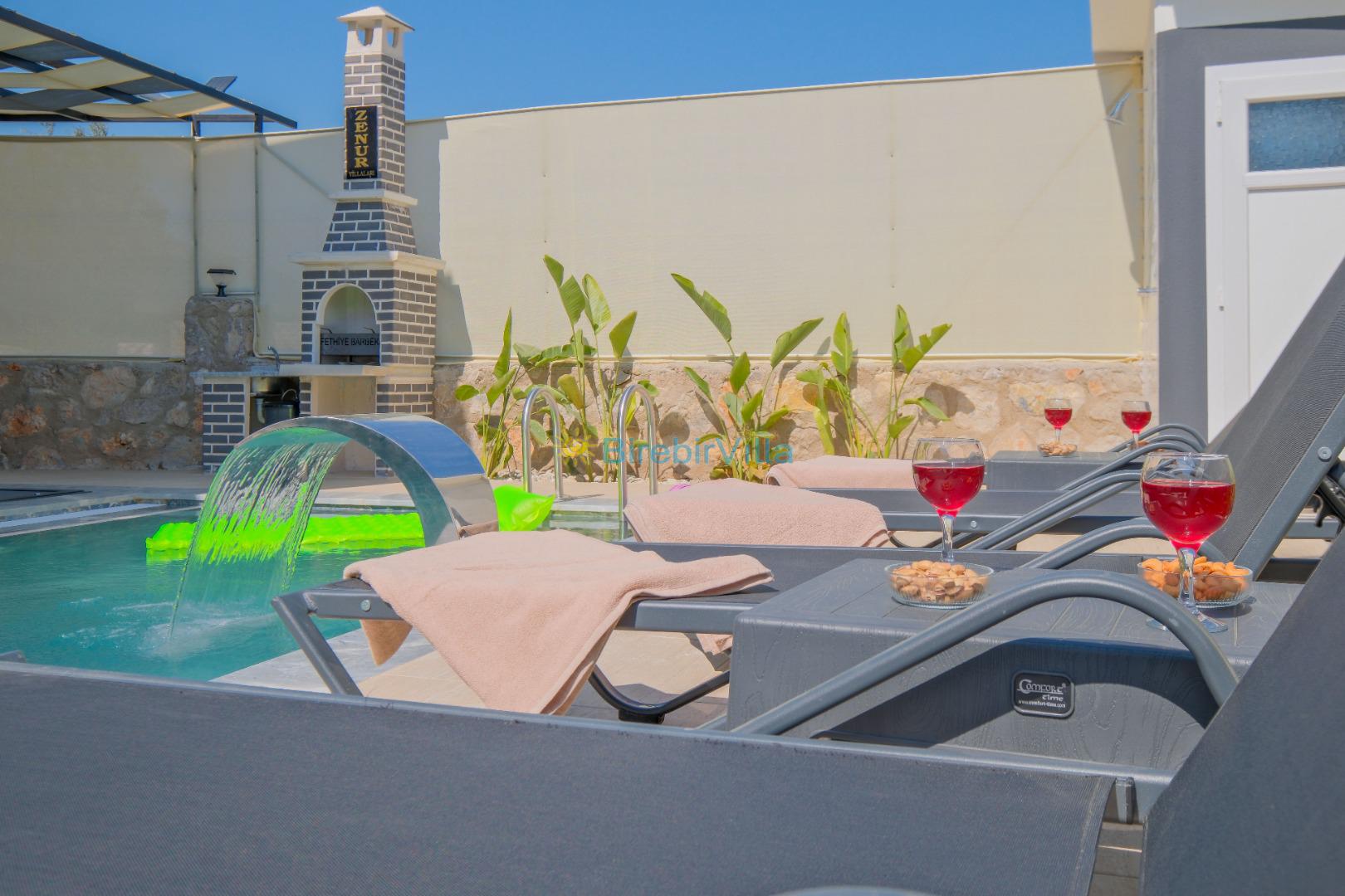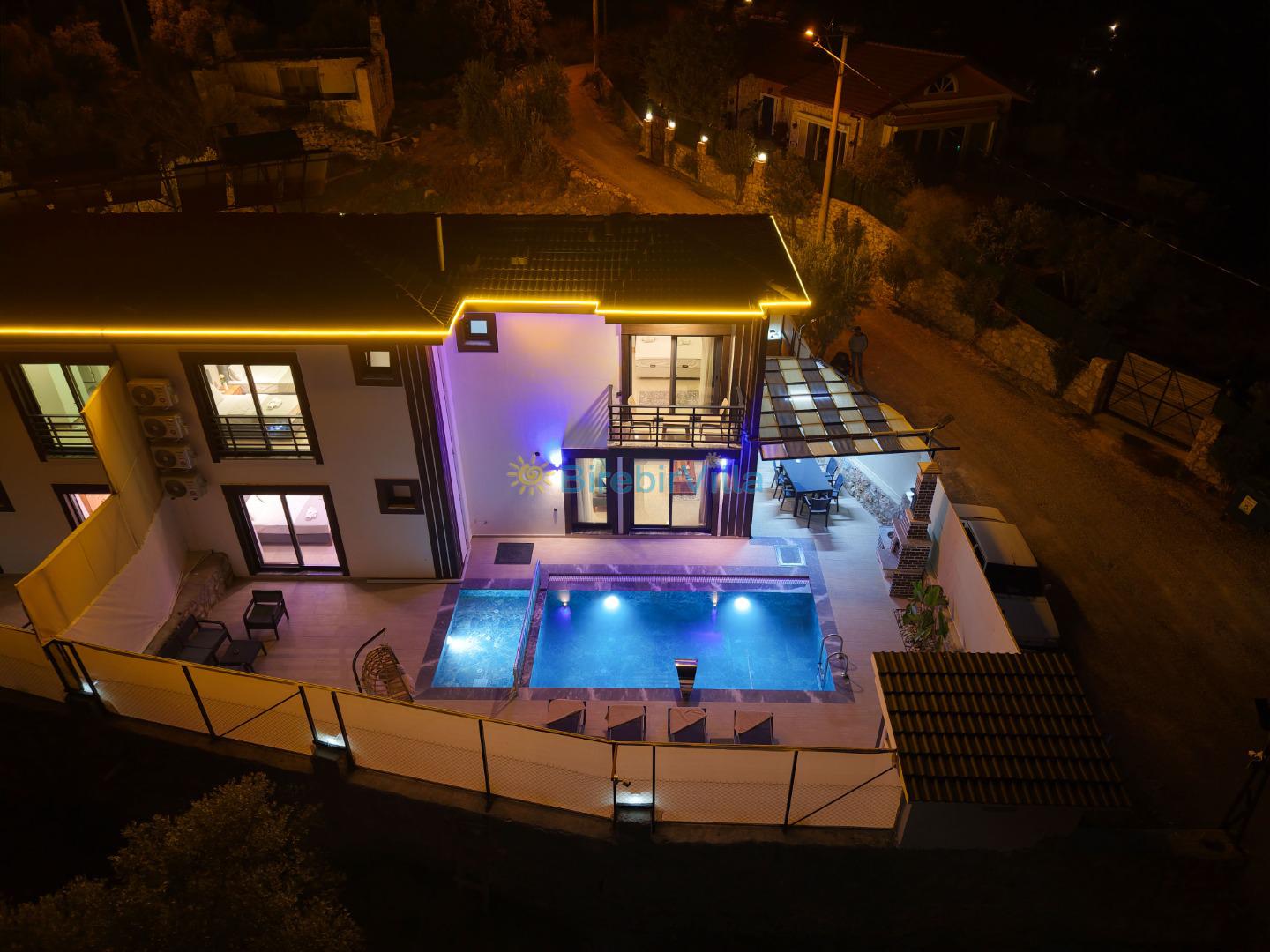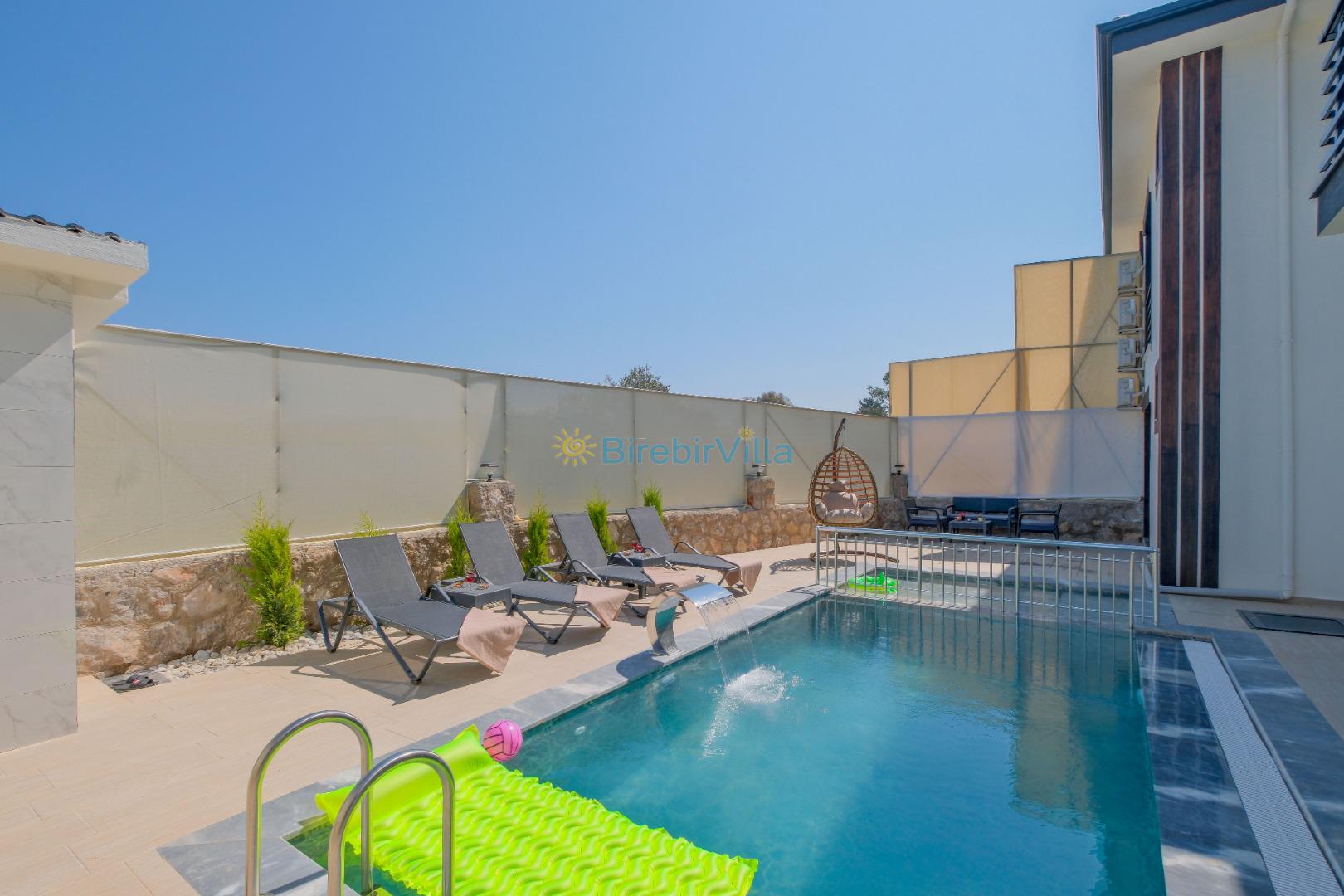 Not: Doğa ile iç içe konuma sahip olan tüm villalarımızda düzenli olarak ilaçlama yapılır. Buna rağmen çevrede haşere vb. bulunma ihtimali vardır. Havuzu korunaklı villalarımızda kesinlikle %100 görünmeme garantisi vermemekteyiz. Bu villalarımızda her zaman % 5 sakınma payı mevcuttur. Sitemizde bulunan villa fotoğraflarının, görüntüyü ekrana sığdırmak için ’Geniş Açılı Lens’ ile çekilmektedir. Bu sebeple resimlerdeki objeler, gerçek boyutlarından daha büyük veya küçük görünebilmekte.