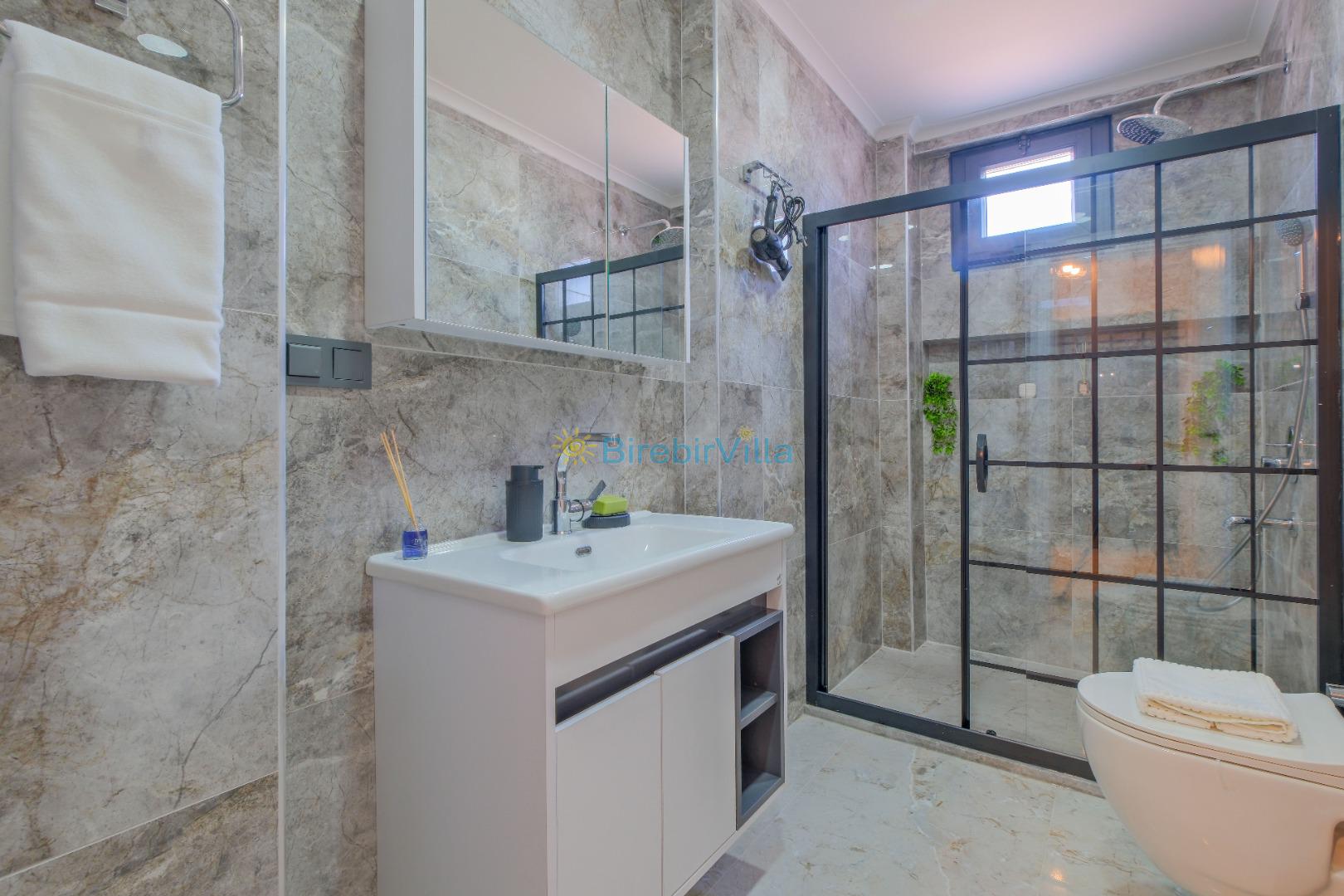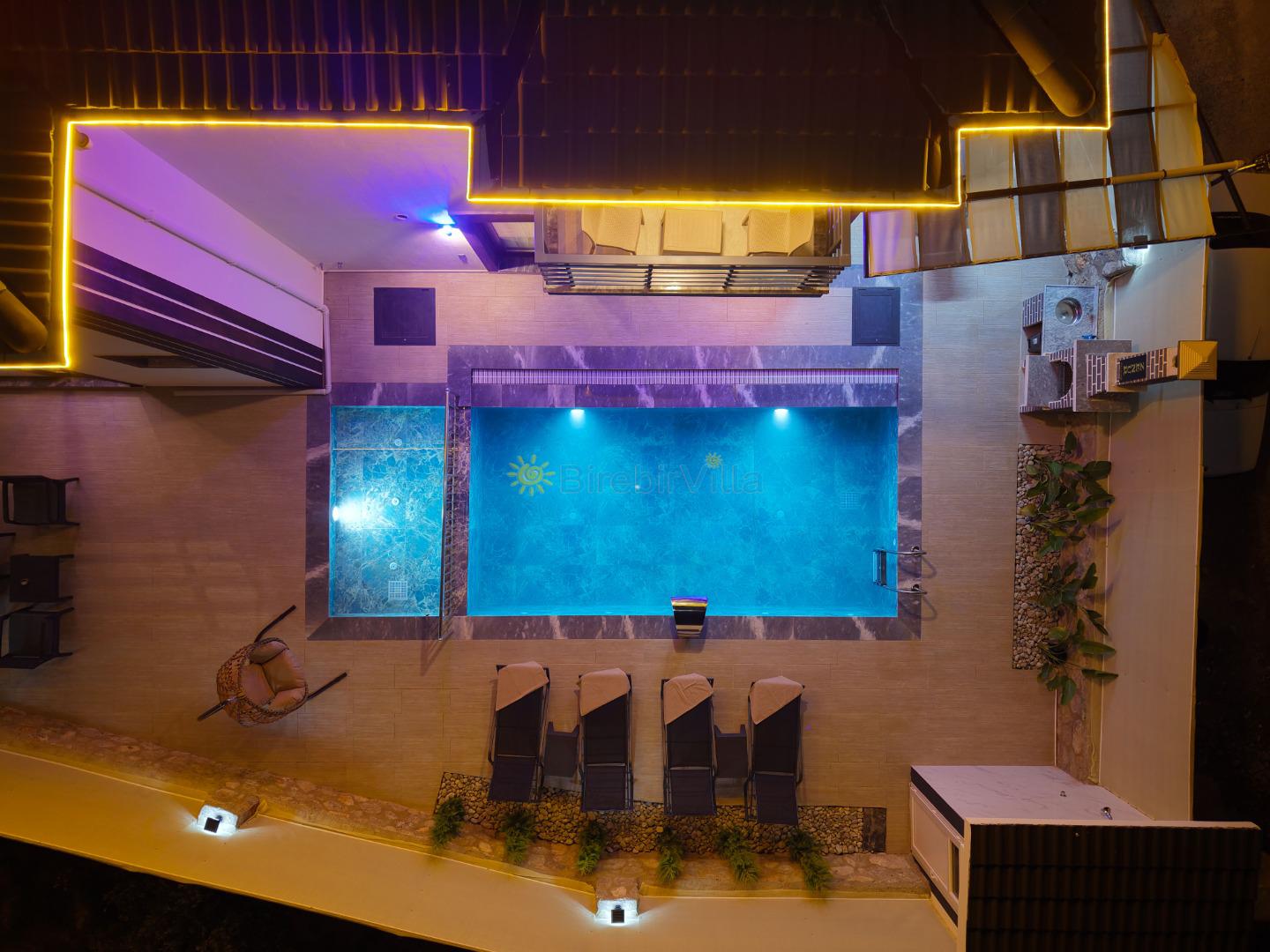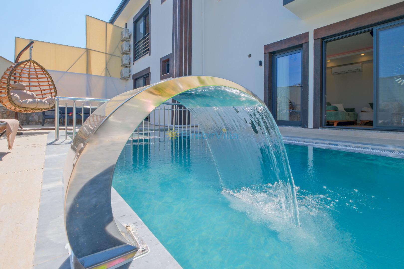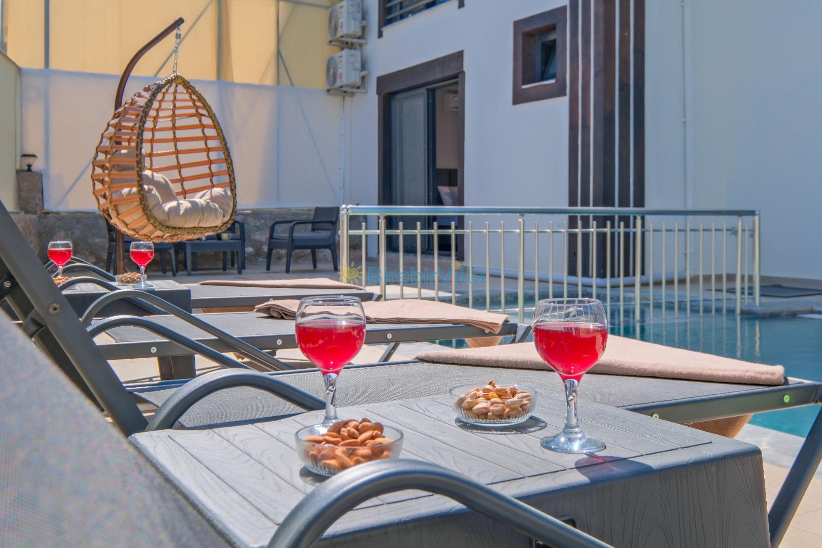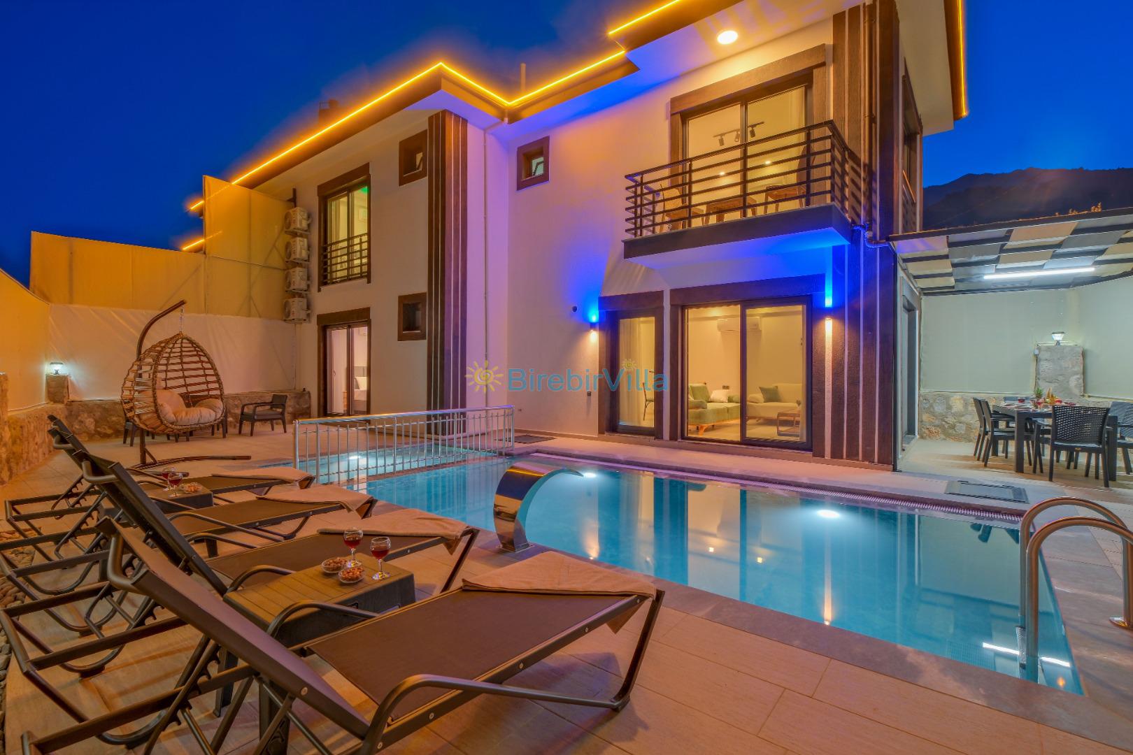 Not: Doğa ile iç içe konuma sahip olan tüm villalarımızda düzenli olarak ilaçlama yapılır. Buna rağmen çevrede haşere vb. bulunma ihtimali vardır. Havuzu korunaklı villalarımızda kesinlikle %100 görünmeme garantisi vermemekteyiz. Bu villalarımızda her zaman % 5 sakınma payı mevcuttur. Sitemizde bulunan villa fotoğraflarının, görüntüyü ekrana sığdırmak için ’Geniş Açılı Lens’ ile çekilmektedir. Bu sebeple resimlerdeki objeler, gerçek boyutlarından daha büyük veya küçük görünebilmekte.