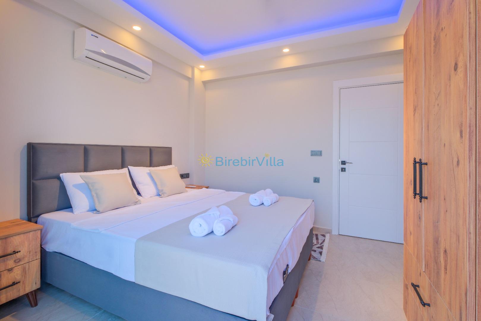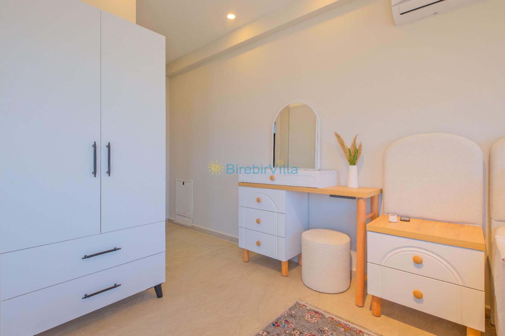 2.Yatak odası: Çift kişilik yatak, klima, ebeveyn banyo, makyaj masası ve elbise dolabı bulunmaktadır.