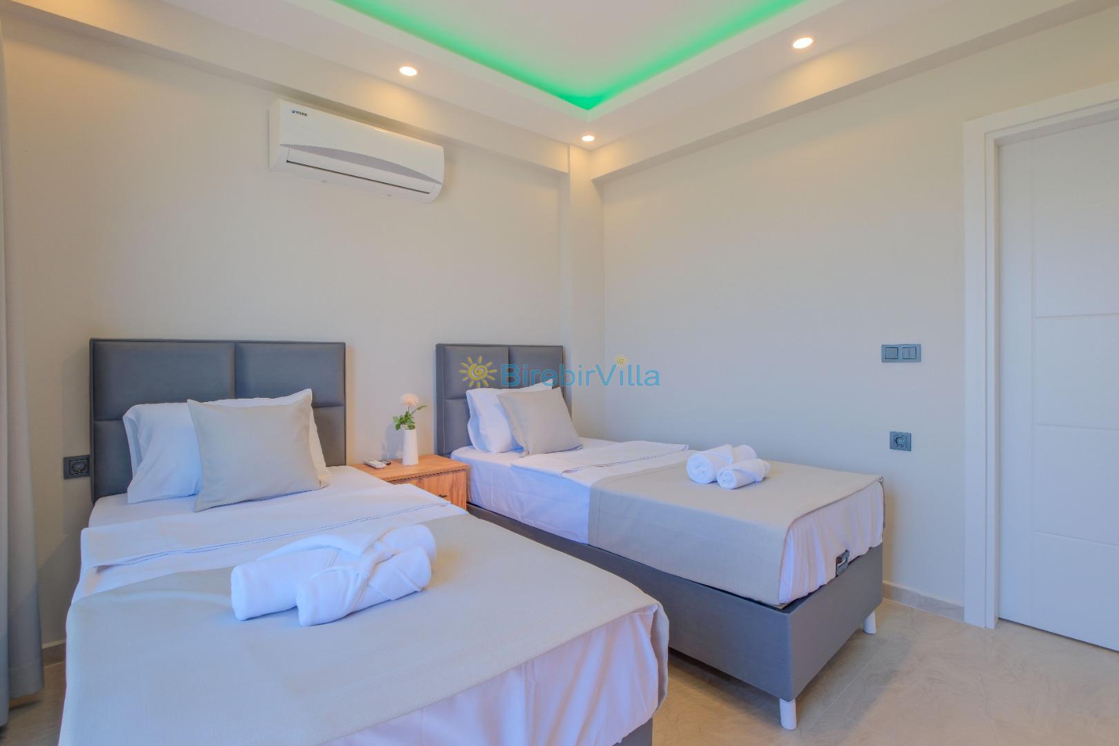 3.Yatak odası: Tek kişilik iki tane yatak,ebeveyn banyo, klima ve elbise dolabı bulunmaktadır.