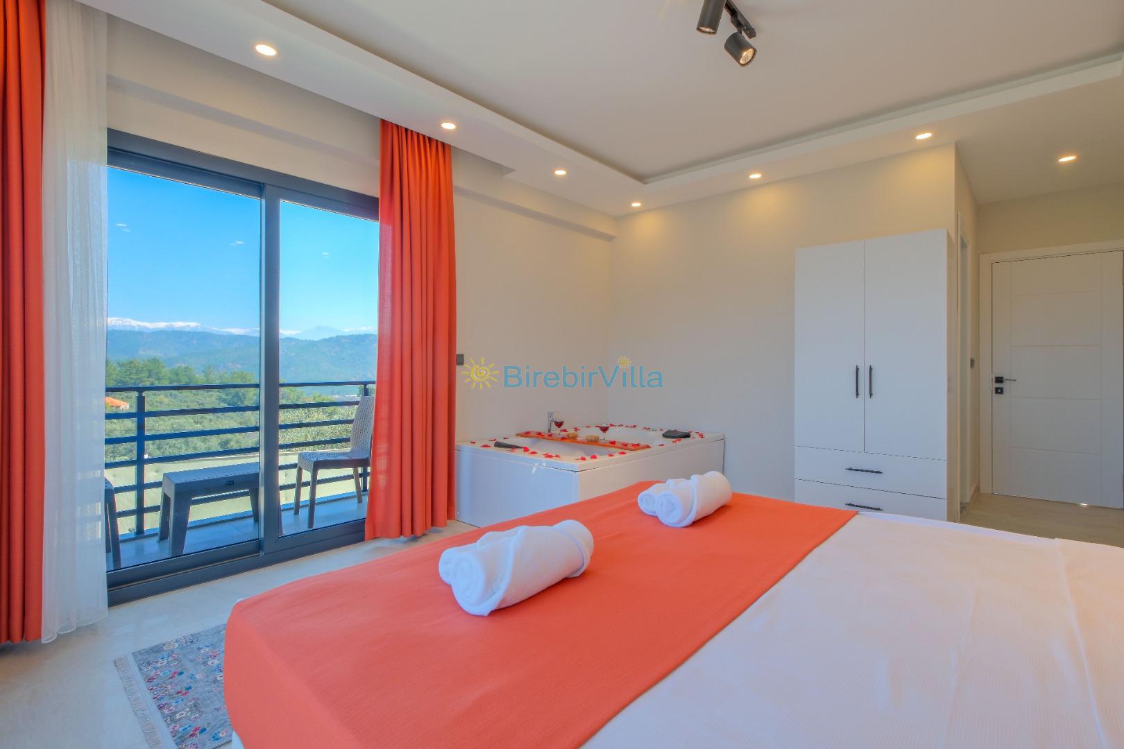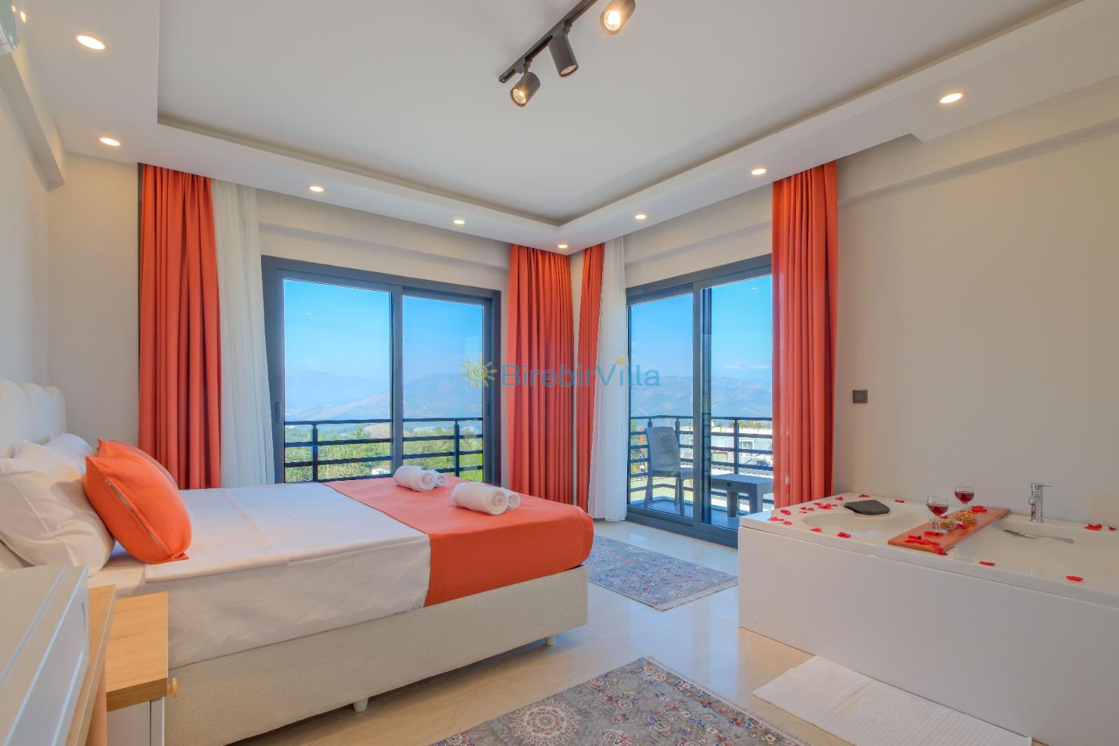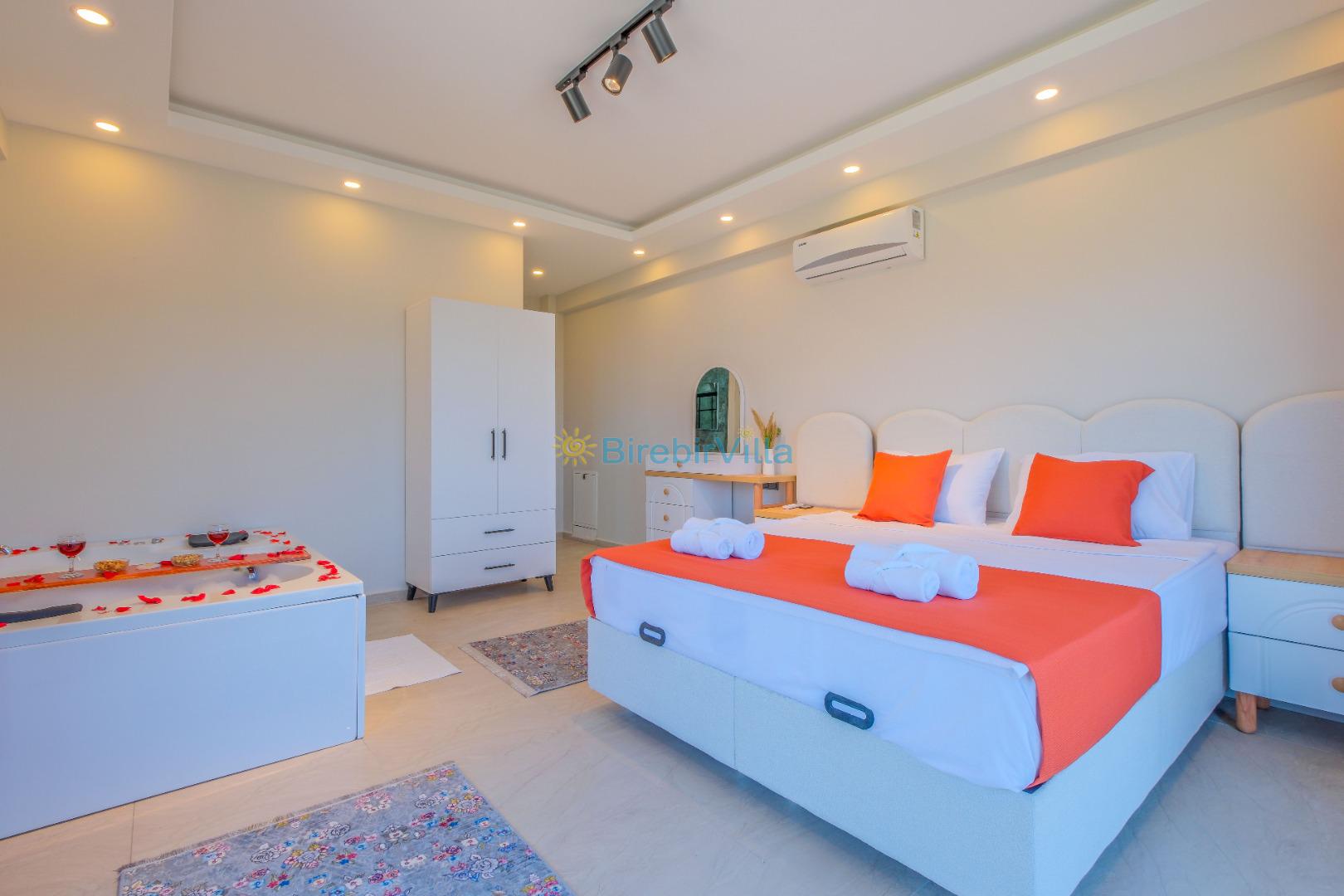 1.Yatak odası: Çift kişilik yatak, klima, ebeveyn banyo, jakuzi, makyaj masası, elbise dolabı bulunmaktadır.