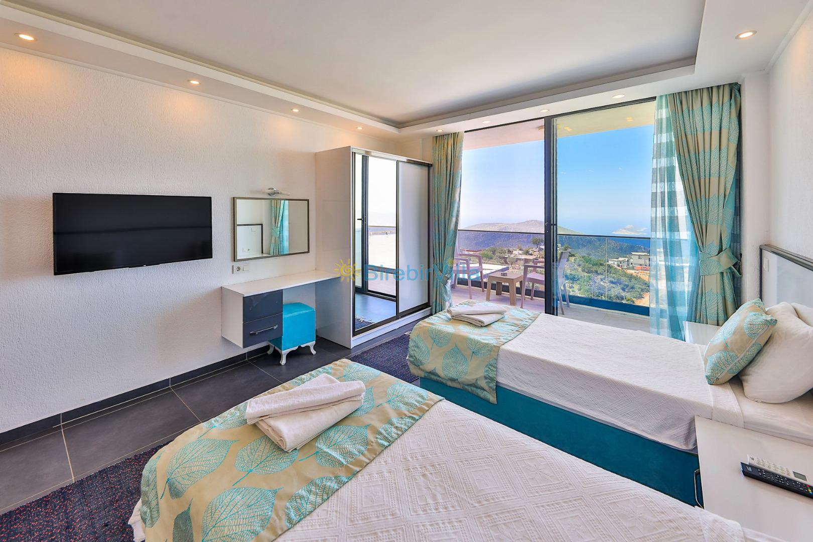 3.Yatak odası: İki tek kişilik yatak, klima, ebeveyn banyo, elbise dolabı ve makyaj masası bulunmaktadır