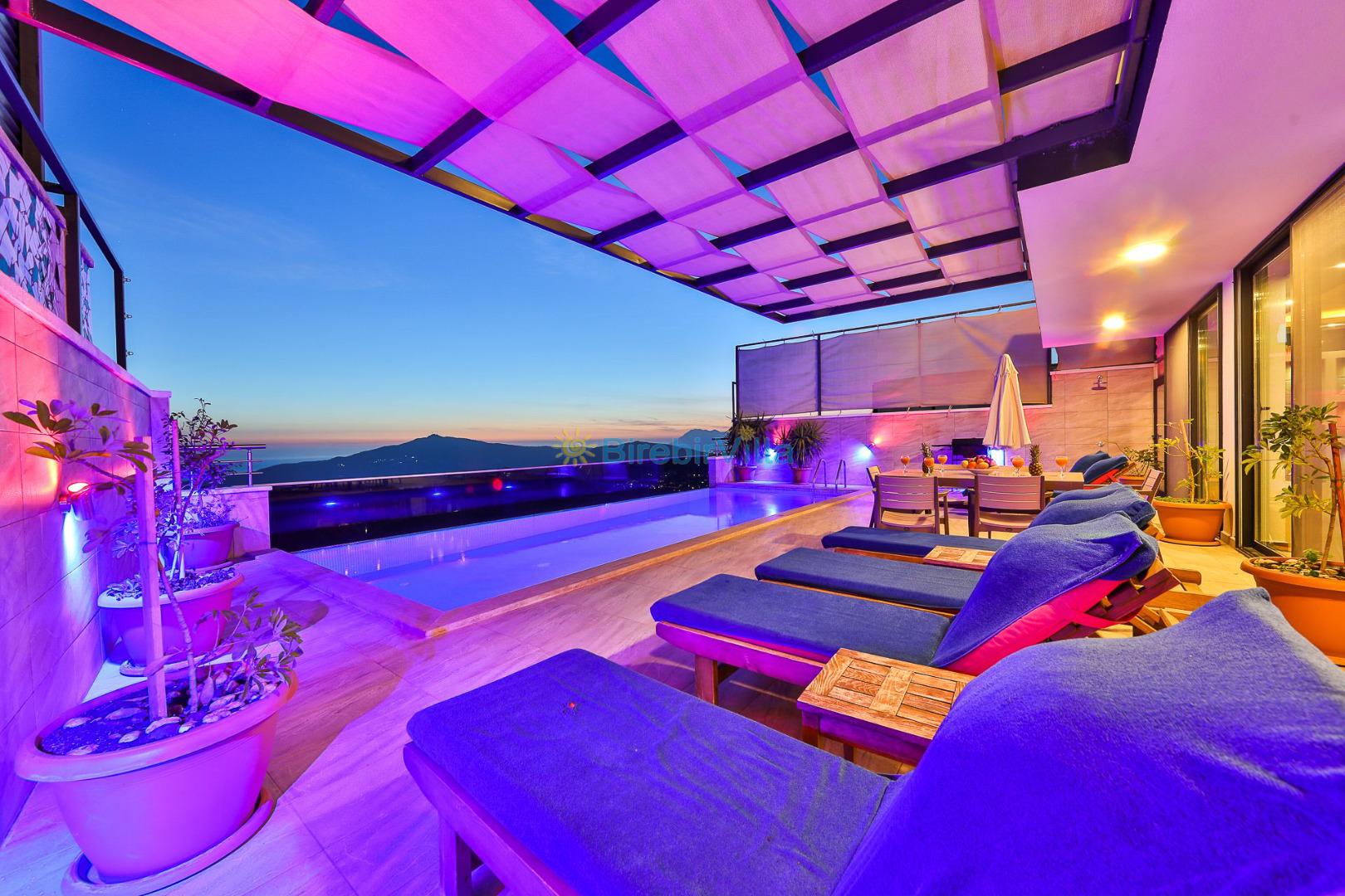 Villa Zeze, Antalya’nın en popüler tatil destinasyonlarından biri olan Kalkan’ın Kördere mevkiinde yer alan, doğa ve deniz manzarasına sahip lüks bir muhafazakar tatil villasıdır. 3 yatak odalı ve 6 kişi konaklama kapasiteli Villa Zeze, geniş aileler ve arkadaş grupları için ideal bir kiralık villa tatili seçeneği sunmaktadır. Modern mimarisi ve konforlu yaşam alanlarıyla misafirlerine huzurlu ve özel bir tatil deneyimi sağlar. Villada jakuzi, sauna ve kapalı yüzme havuzu, langırt, bilardo ve masa tenisi gibi özel donanımlar bulunmaktadır. Özellikle muhafazakar konseptte tasarlanan villa, korunaklı yapısı sayesinde gözlerden uzak, rahat ve güvenli bir tatil imkânı sunar. Doğa ile iç içe konumu sayesinde Villa Zeze, hem Kalkan deniz manzaralı villa hem de doğa manzaralı kiralık villa arayanlar için mükemmel bir seçenektir.