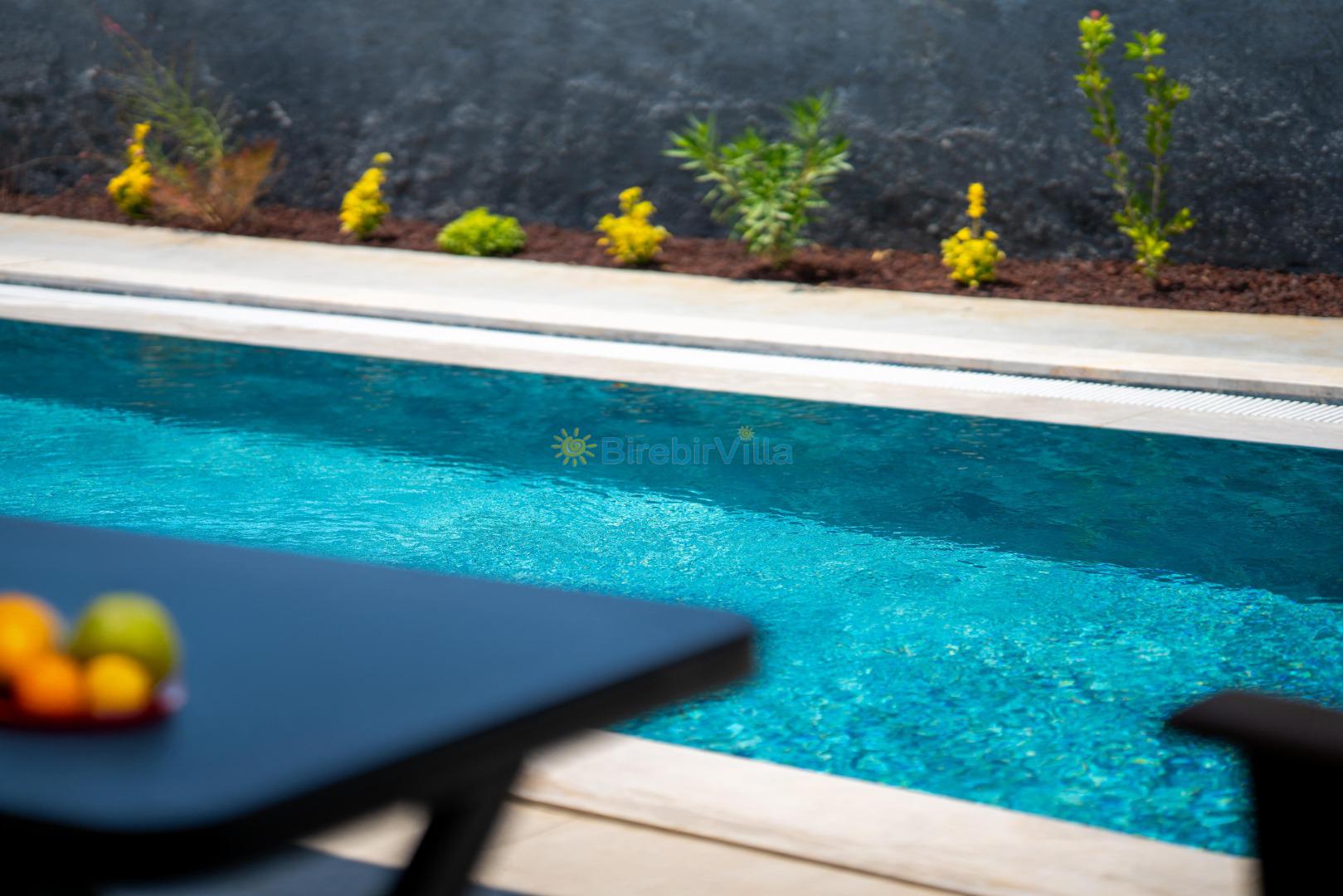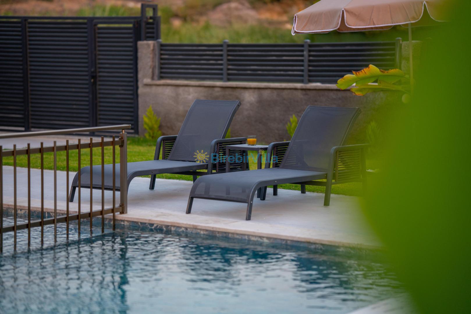 Not: Doğa ile iç içe konuma sahip olan tüm villalarımızda düzenli olarak ilaçlama yapılır. Buna rağmen çevrede haşere vb. bulunma ihtimali vardır. Havuzu korunaklı villalarımızda kesinlikle %100 görünmeme garantisi vermemekteyiz. Bu villalarımızda her zaman %5 sakınma payı mevcuttur. Sitemizde bulunan villa fotoğraflarının, görüntüyü ekrana sığdırmak için ’Geniş Açılı Lens’ ile çekilmektedir. Bu sebeple resimlerdeki objeler, gerçek boyutlarından daha büyük veya küçük görünebilmekte